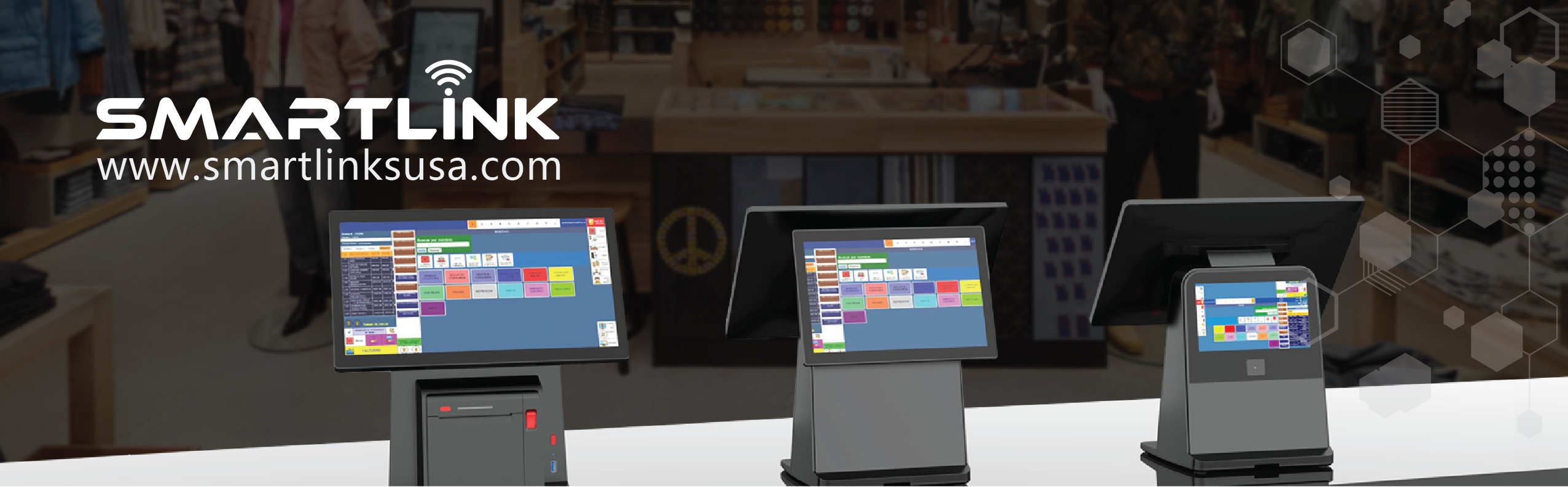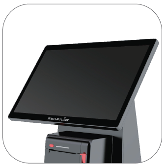 The touch screen displays sales information and interacts with Smartlink's Smart POS software for cashiers.