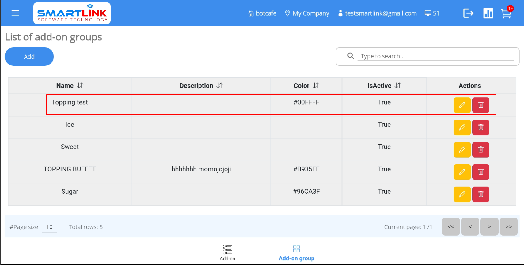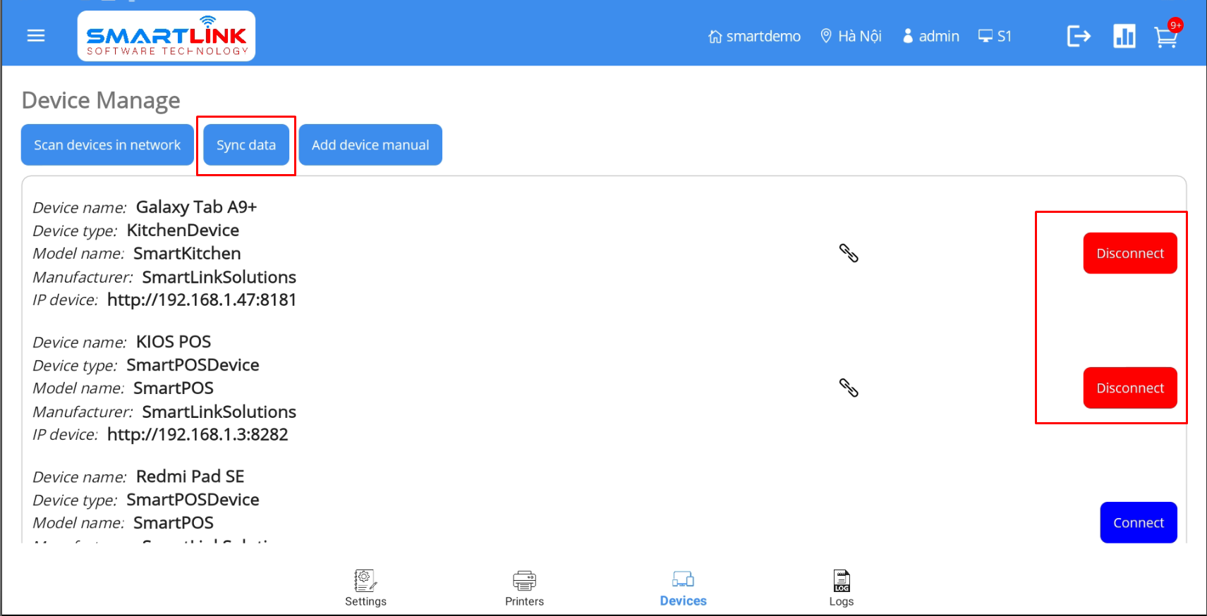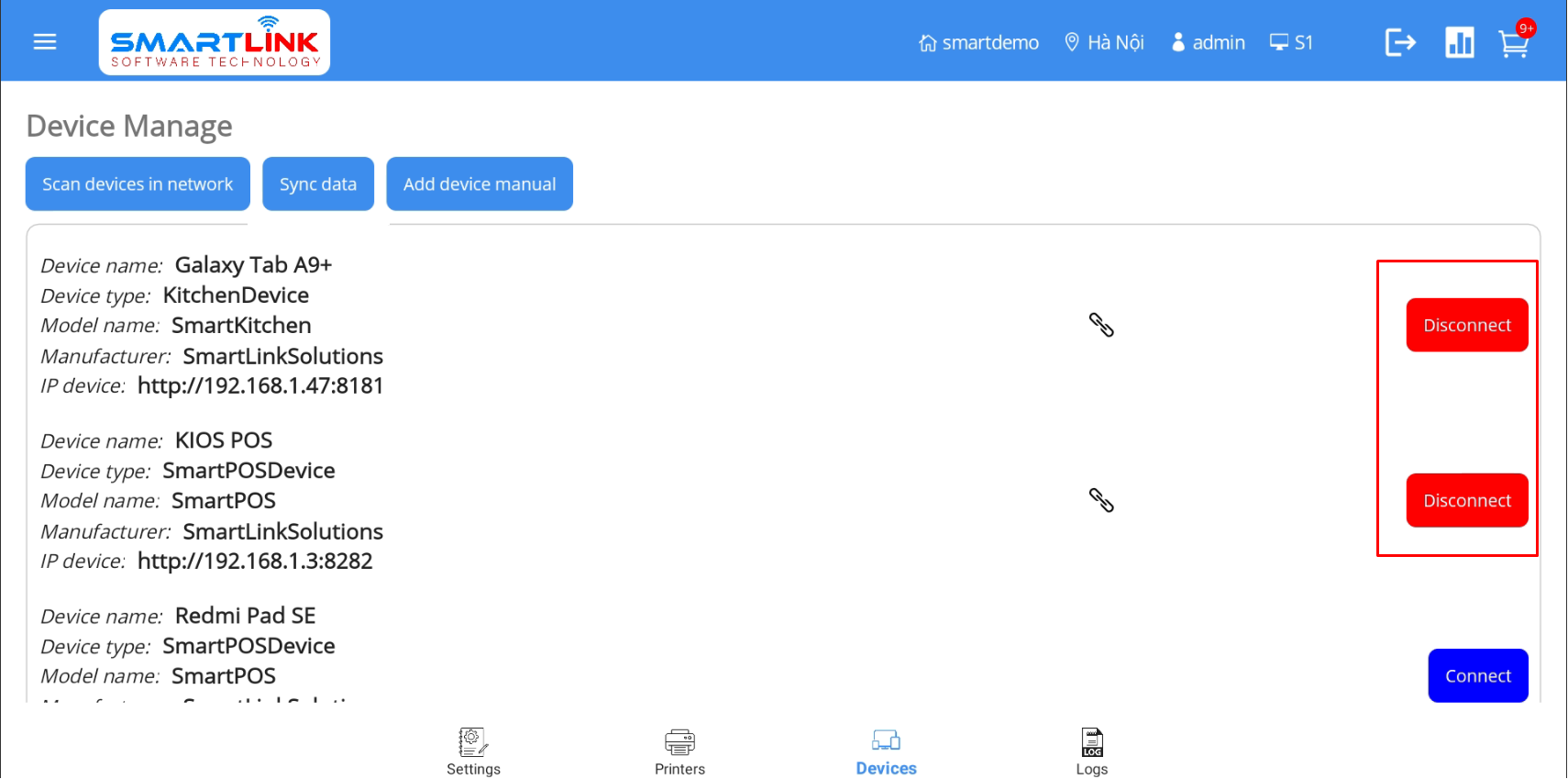 ● POS and Kitchen are connected together, the button status will be changed from Connect to Disconnect
