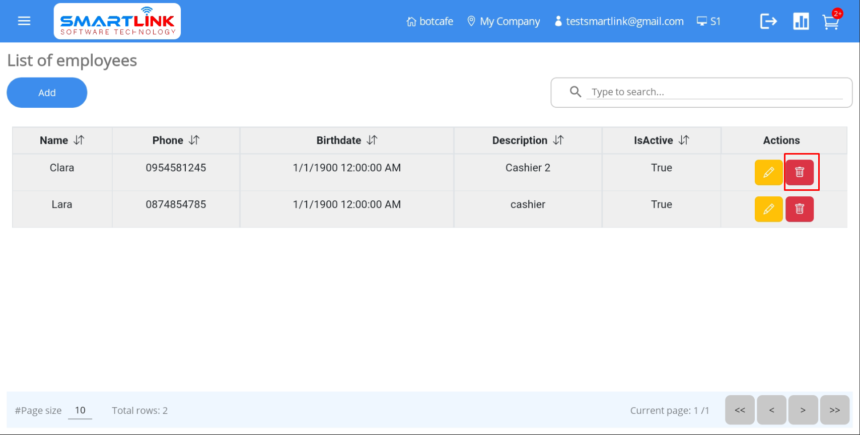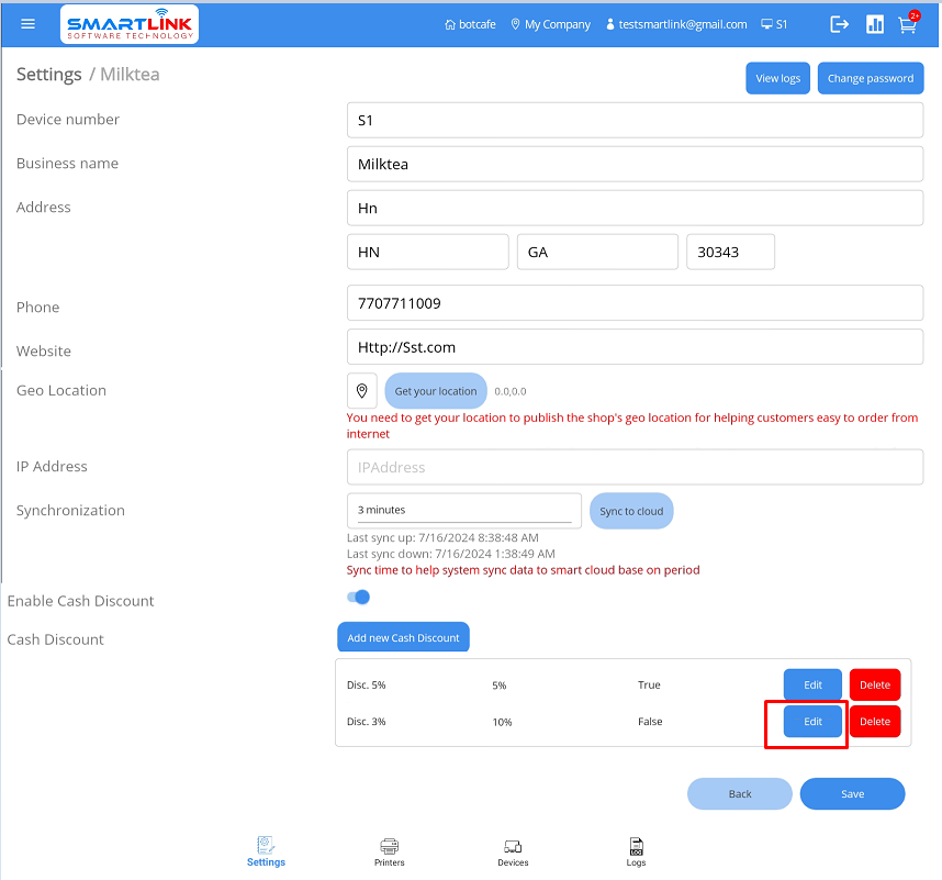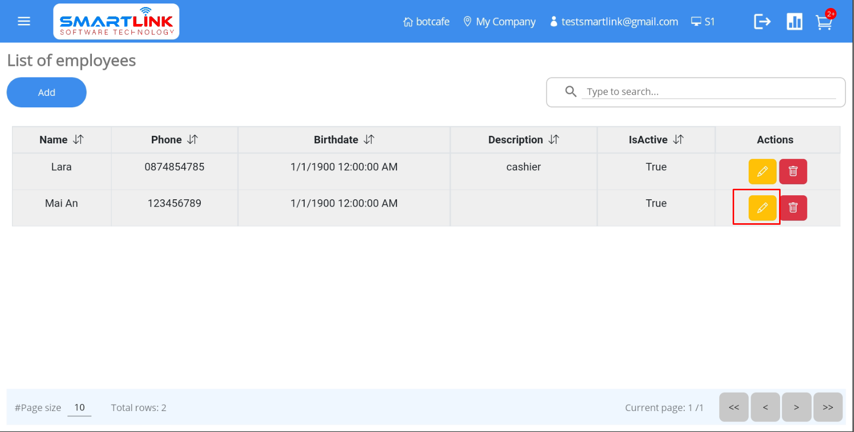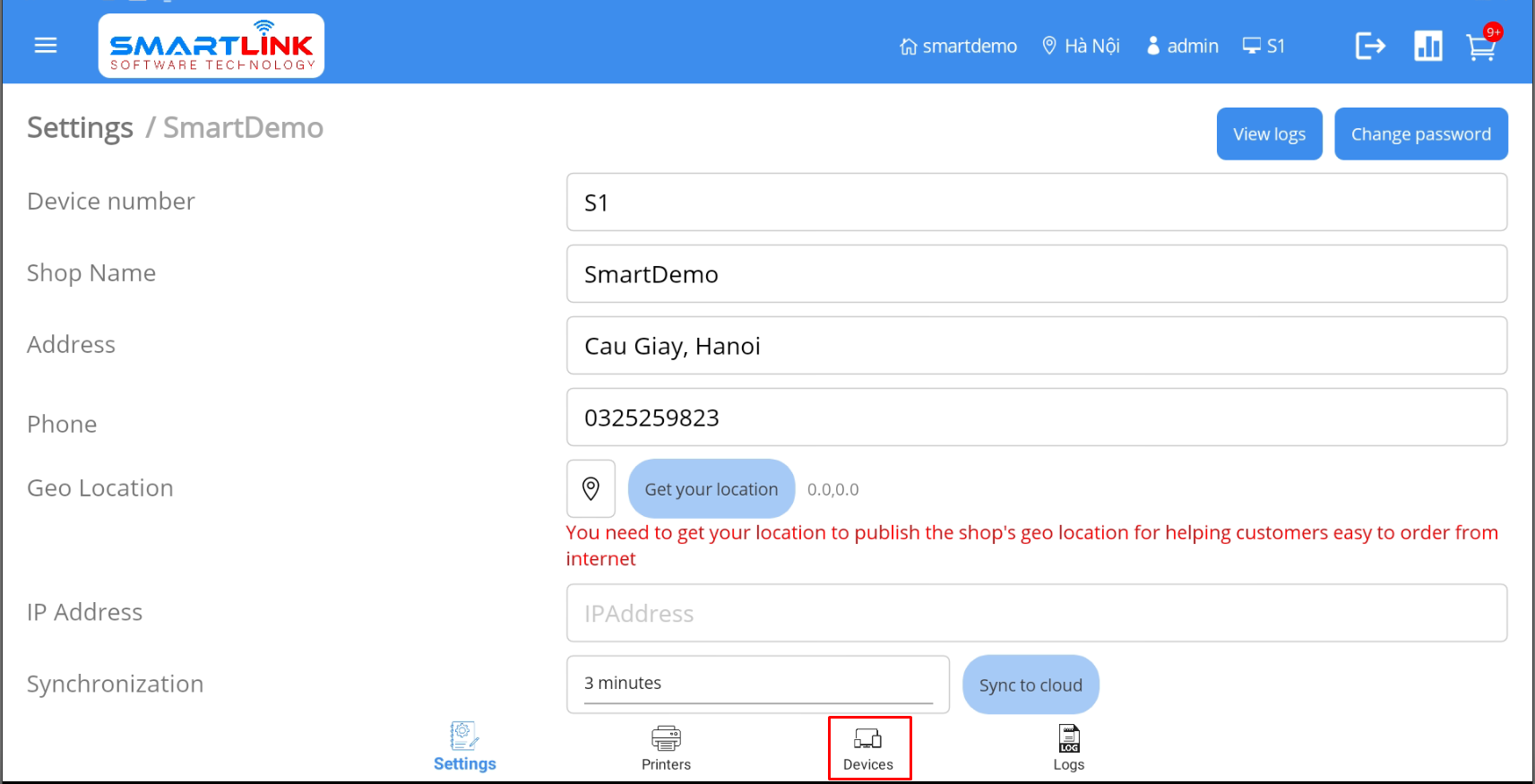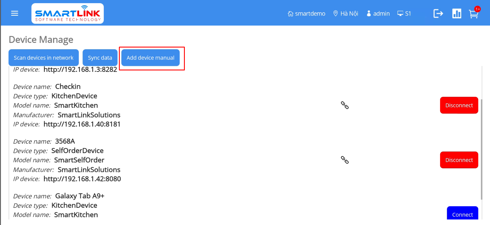 ● Users need to click to connect the POS device[1] and the Kitchen device[2]