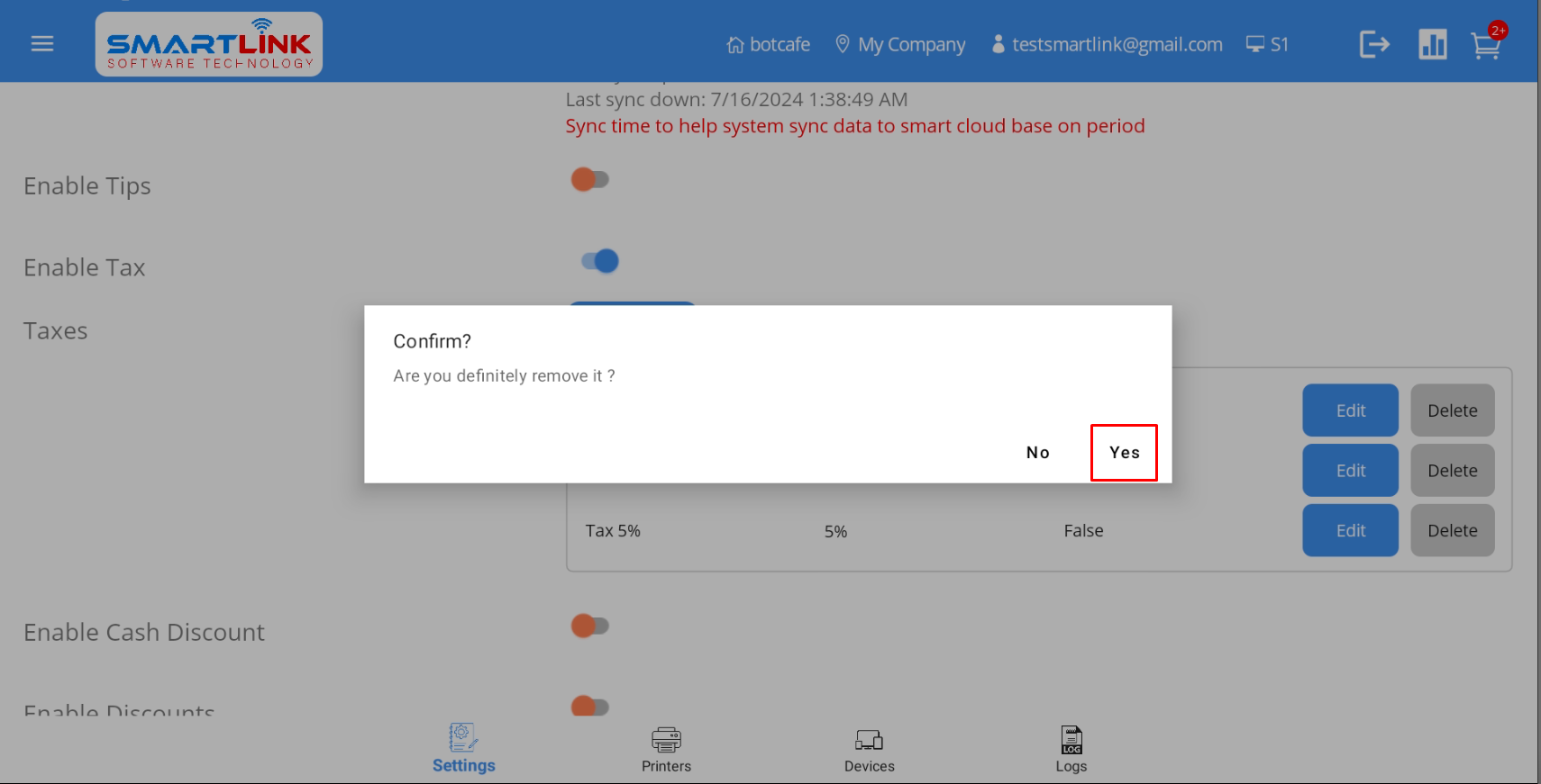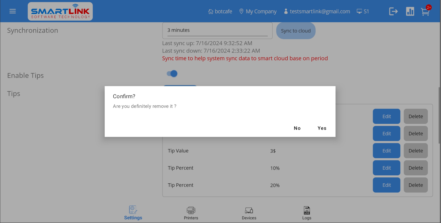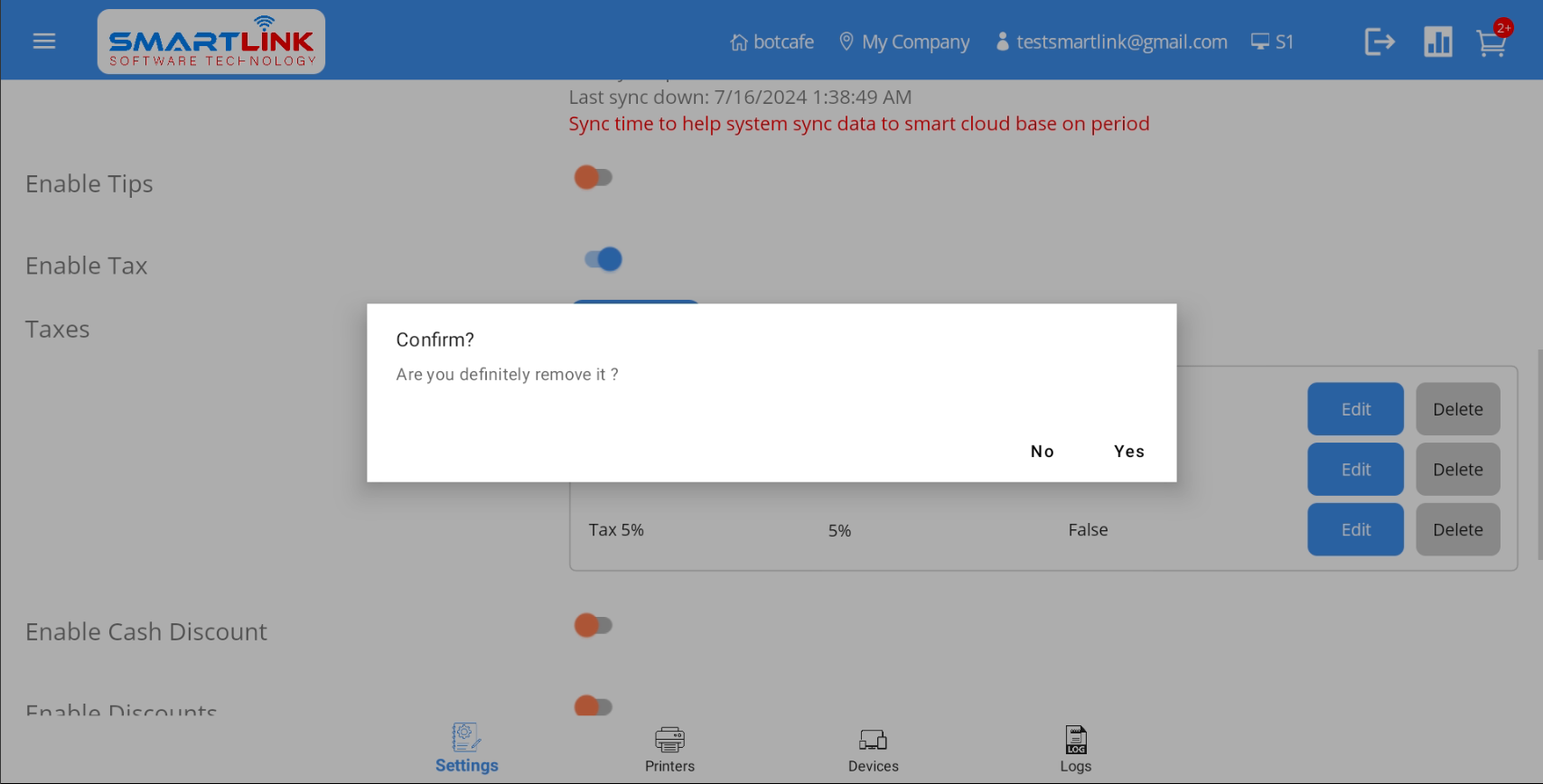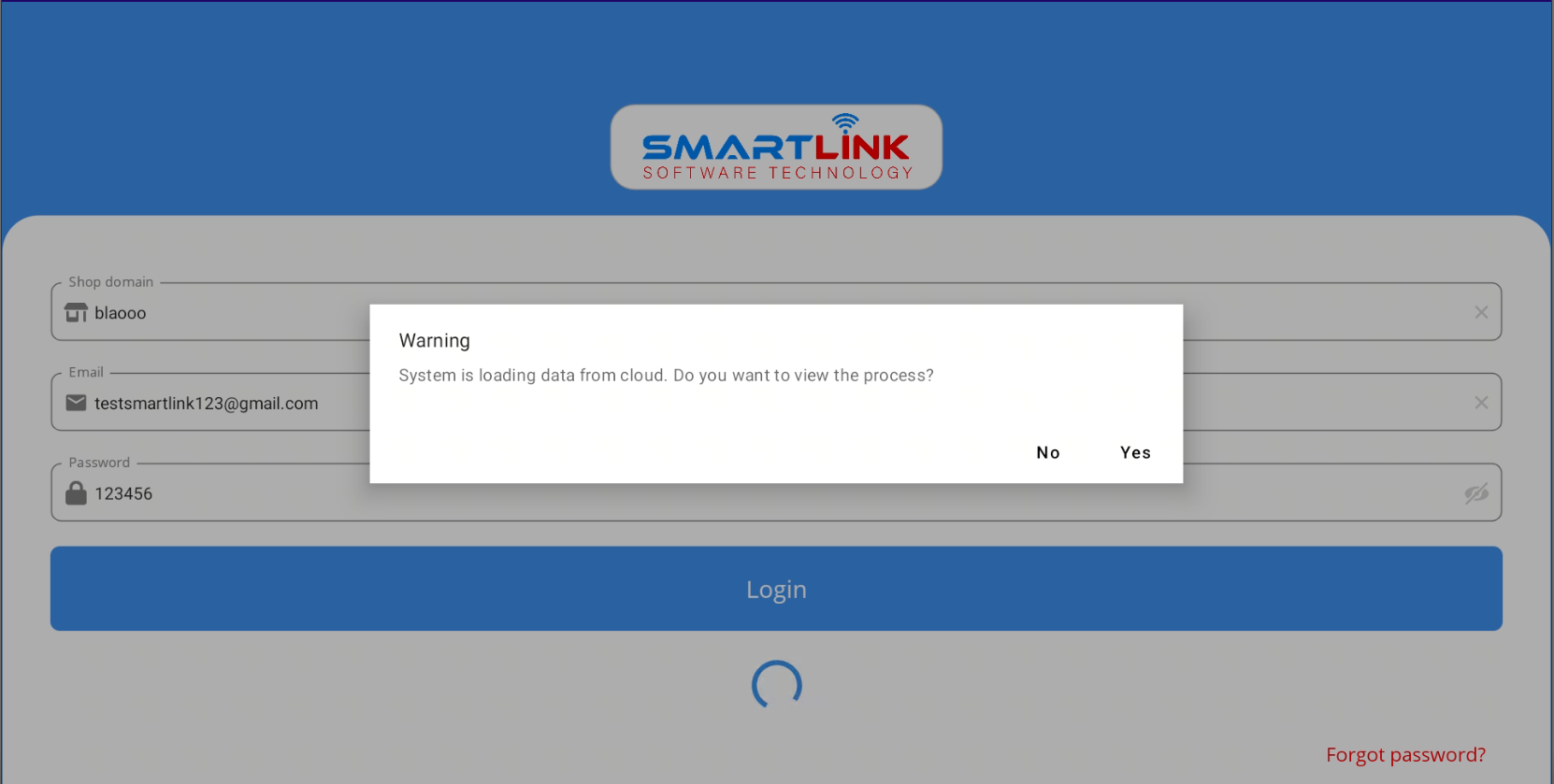 ● Press the button No, the system will not synchronize data from the Cloud to the POS