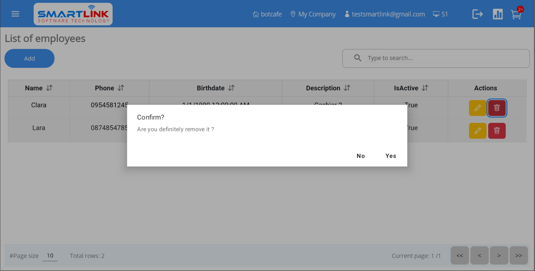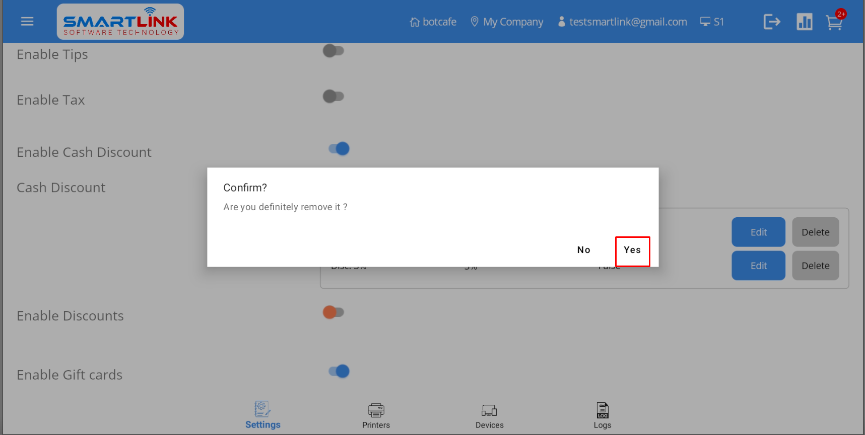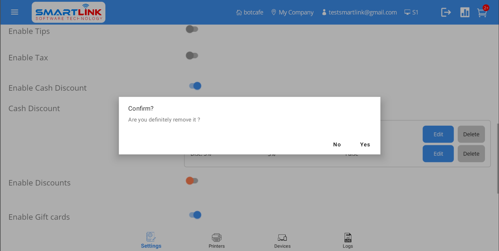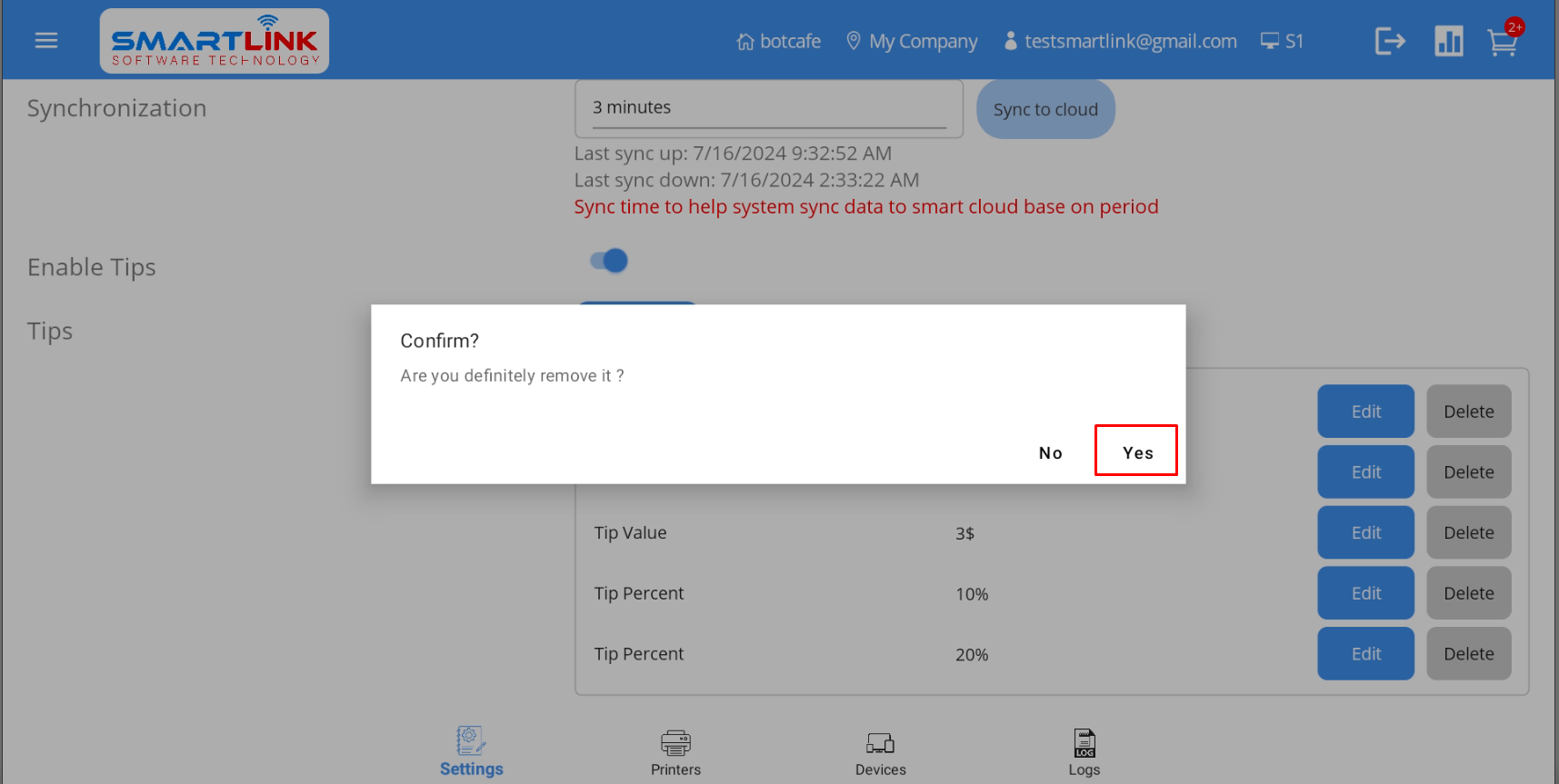 ● Press the button No, the system will not synchronize data from the Cloud to the POS