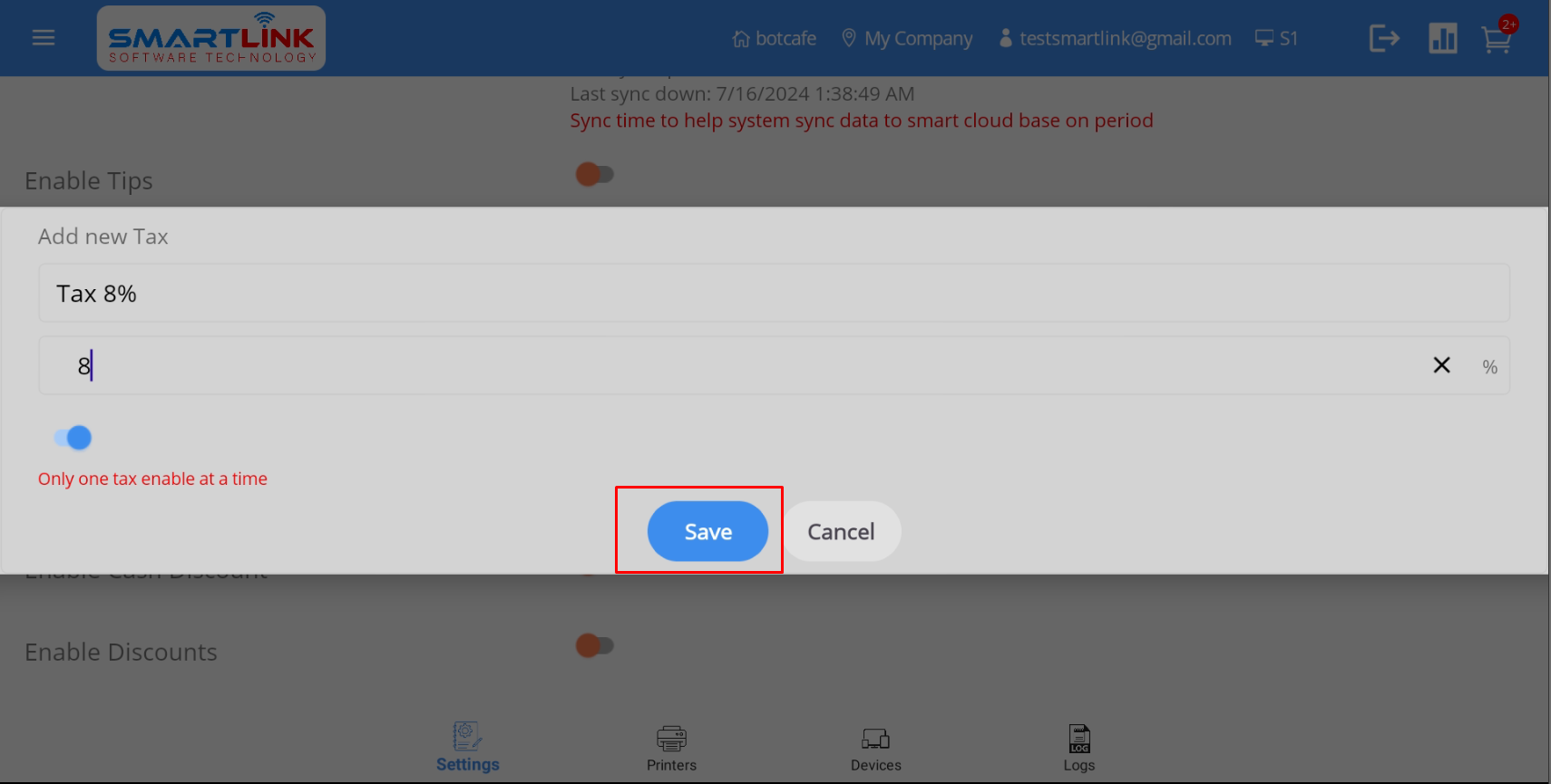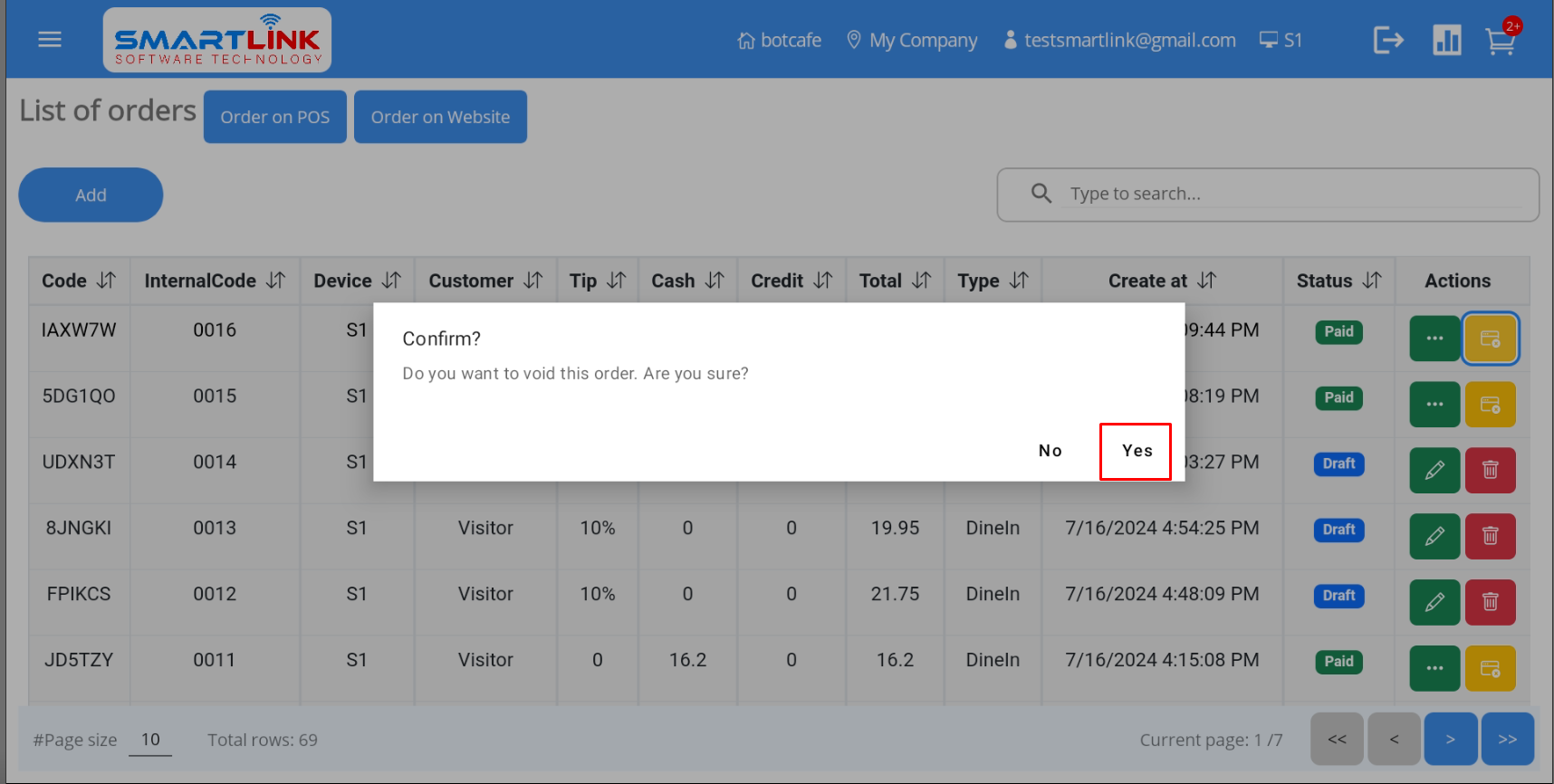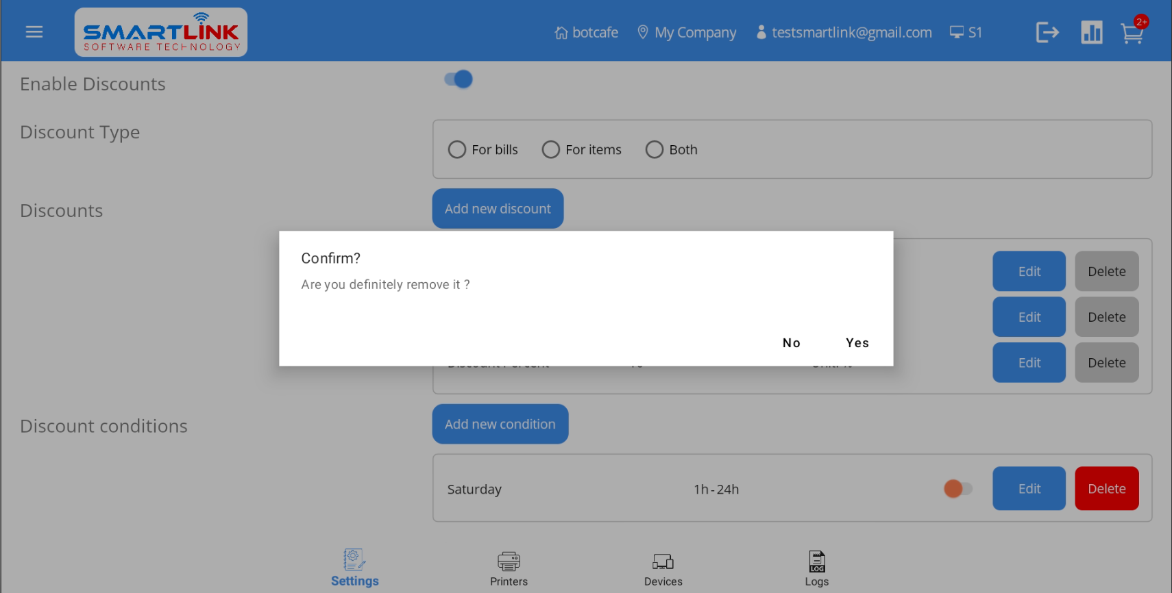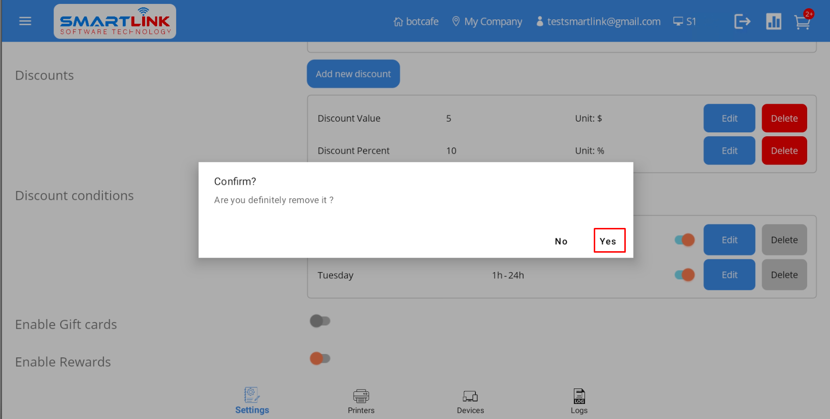 ● Press the button No, the system will not synchronize data from the Cloud to the POS