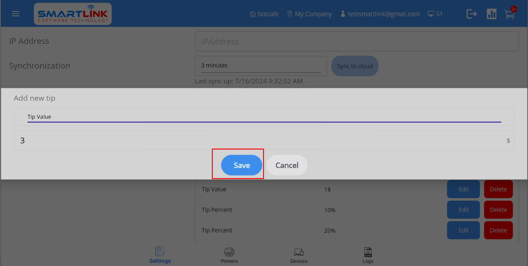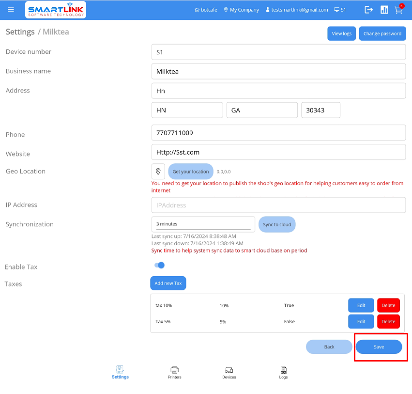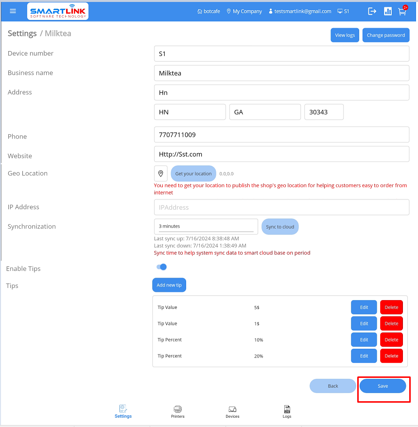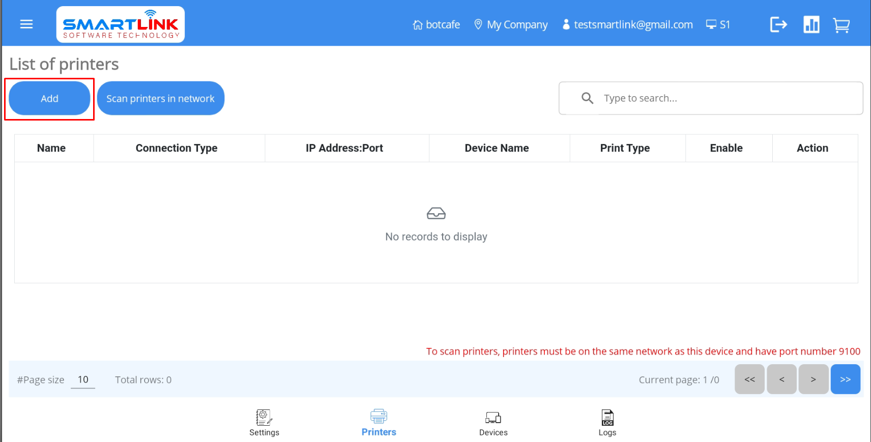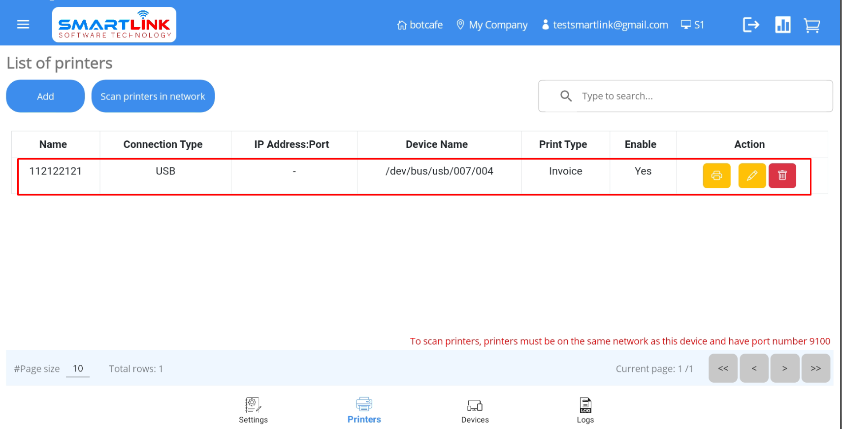 - Step 4: After successfully saving the settings => printer information will be displayed on the list of printing