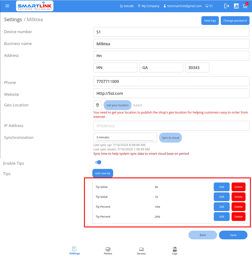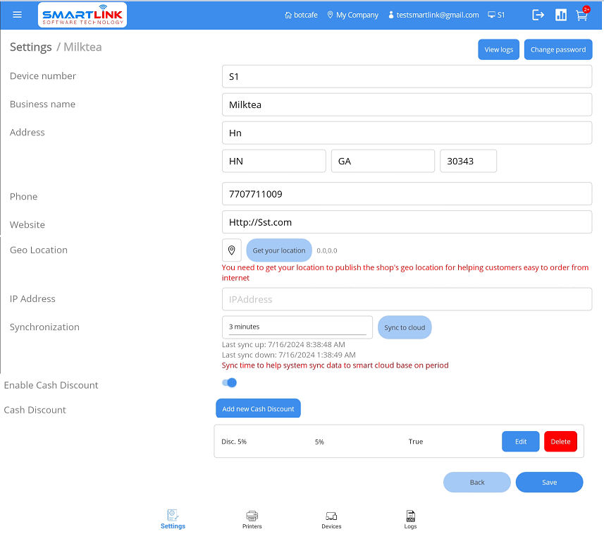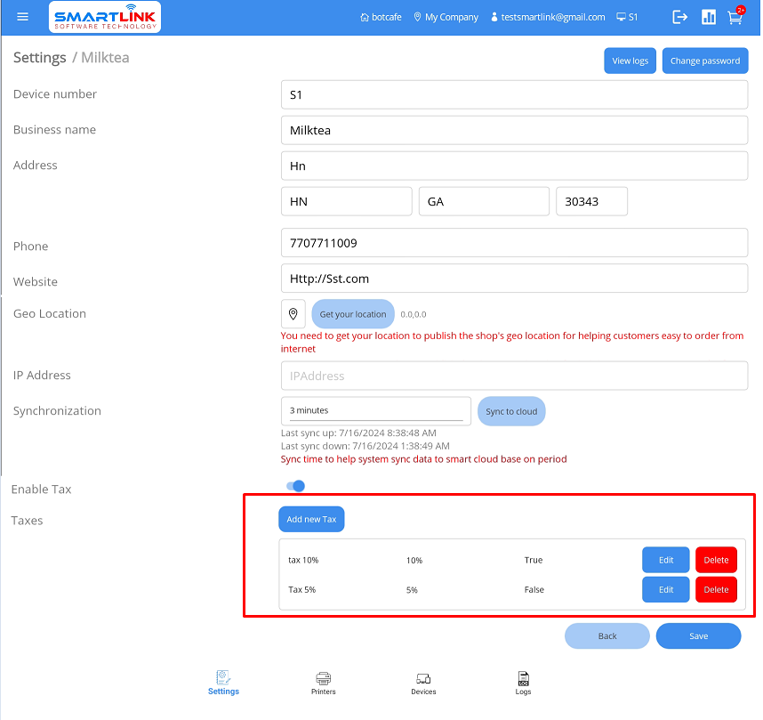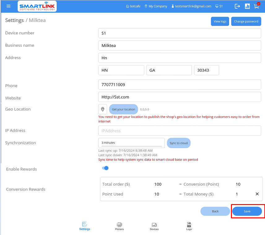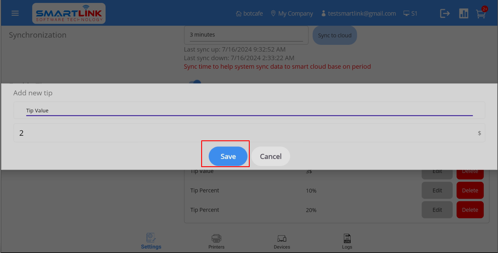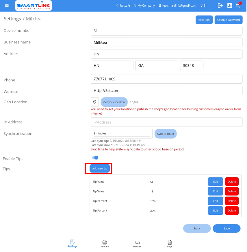 - Step 4: After successfully saving the settings => printer information will be displayed on the list of printing