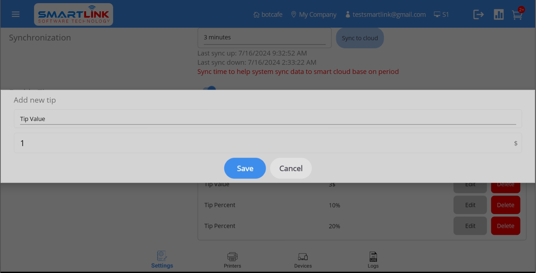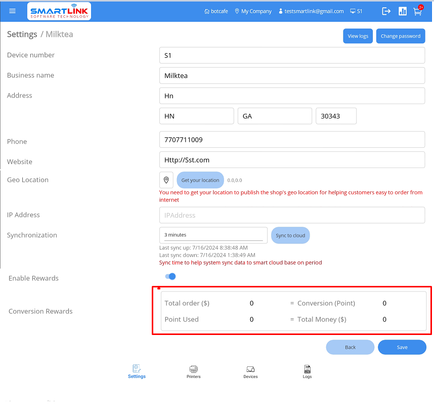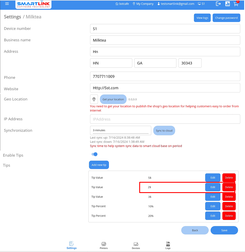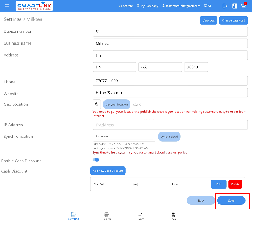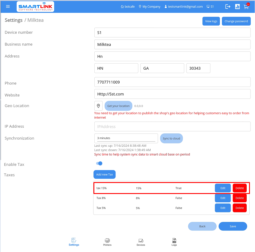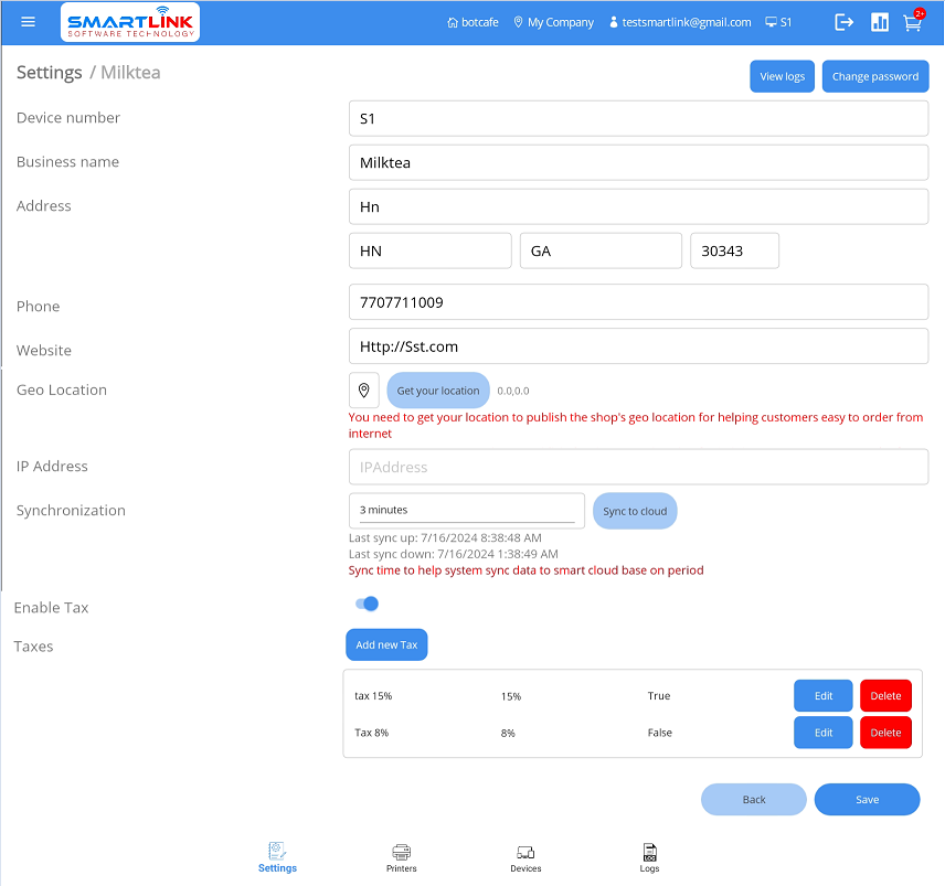 - Step 4: After successfully saving the settings => printer information will be displayed on the list of printing
