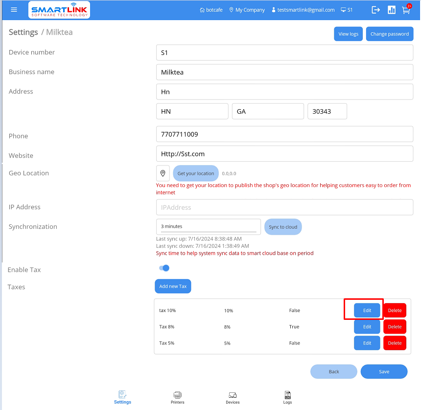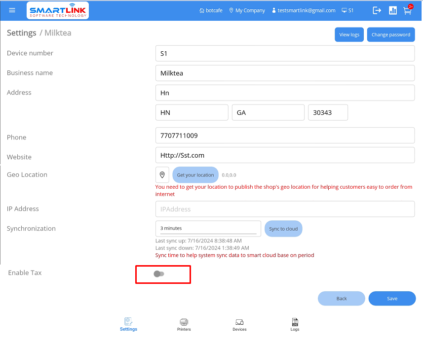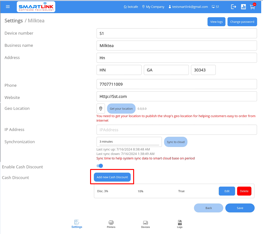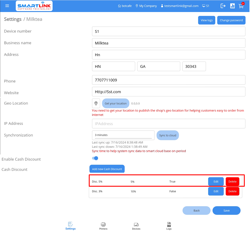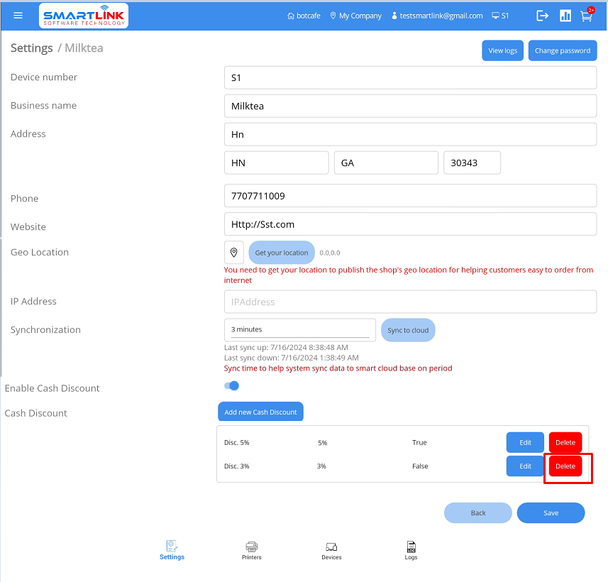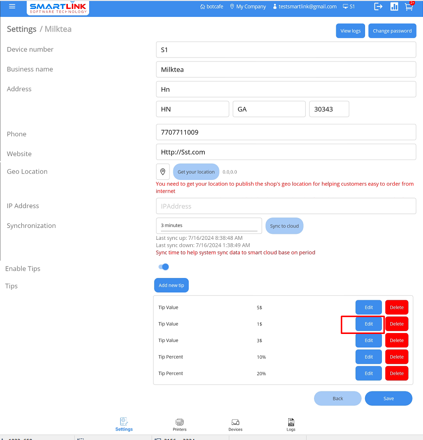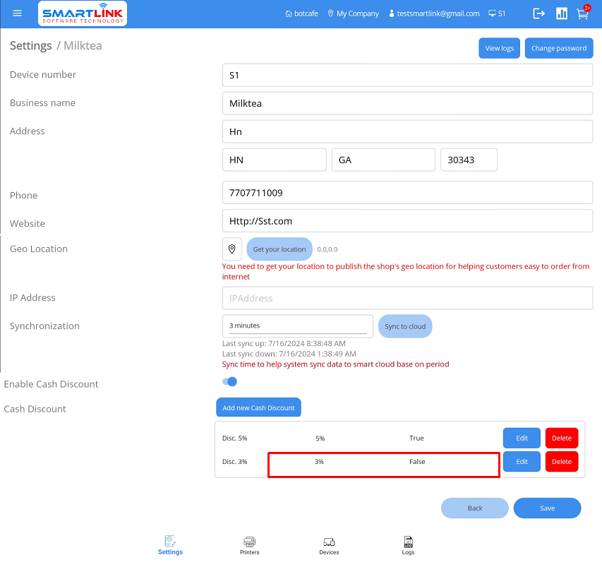 - Step 4: After successfully saving the settings => printer information will be displayed on the list of printing
