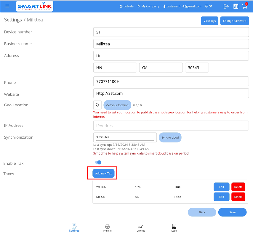 Successfully saved, the system displays newly created device information on the Device Manage screen