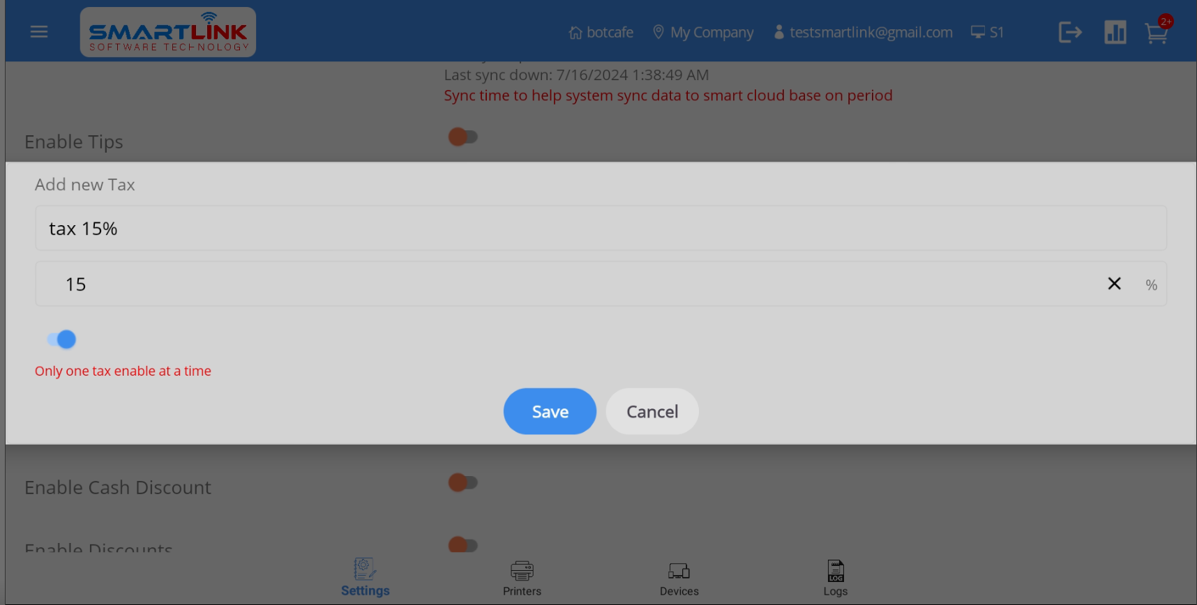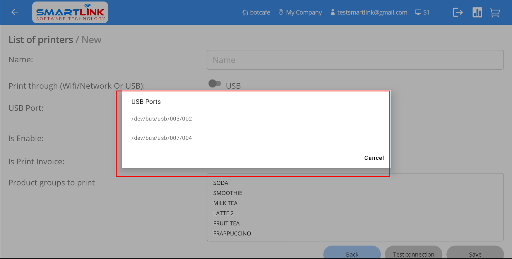 ● The user clicks on the USB port field. The system automatically detects the USB port connected to the POS machine