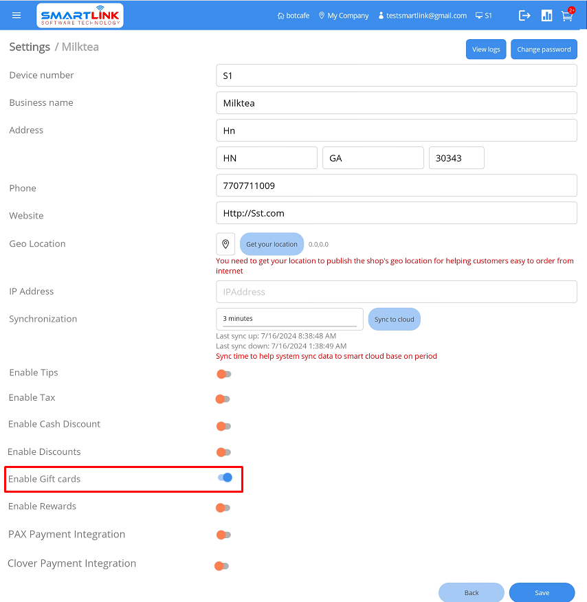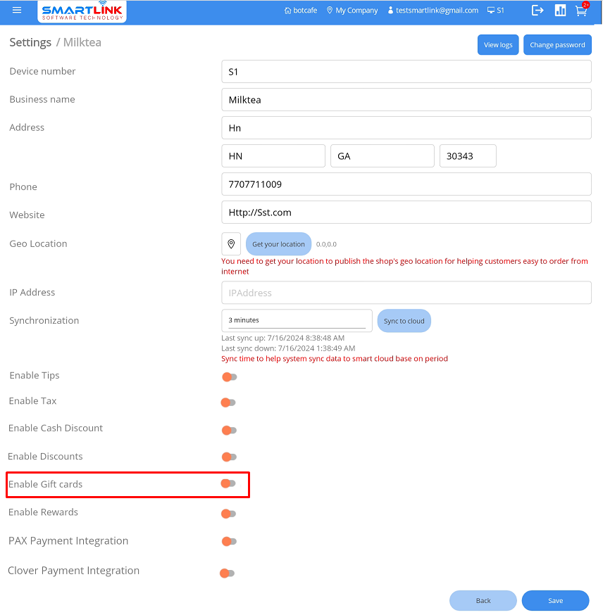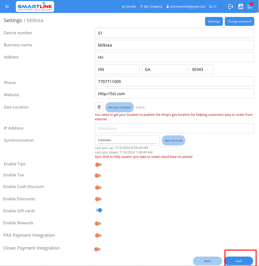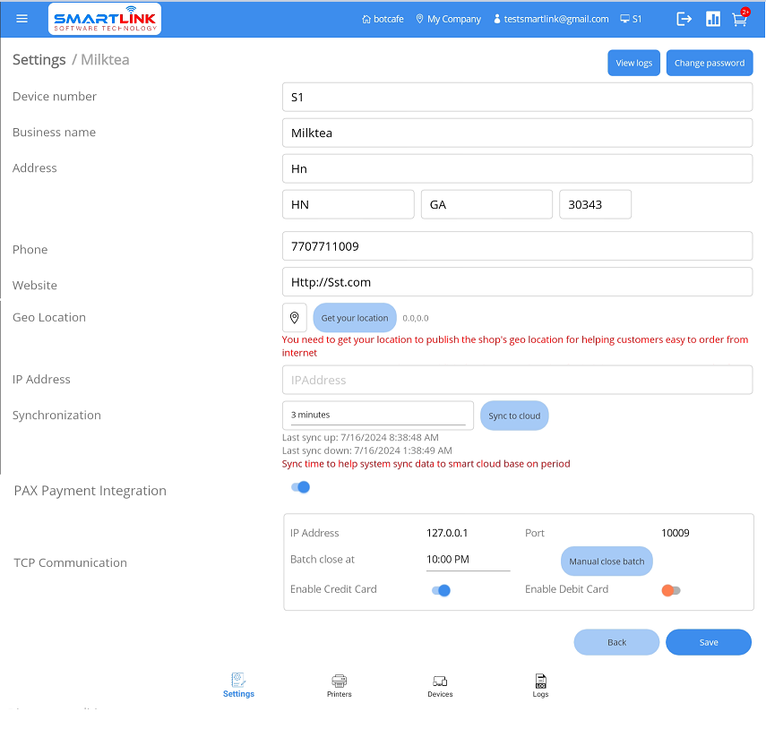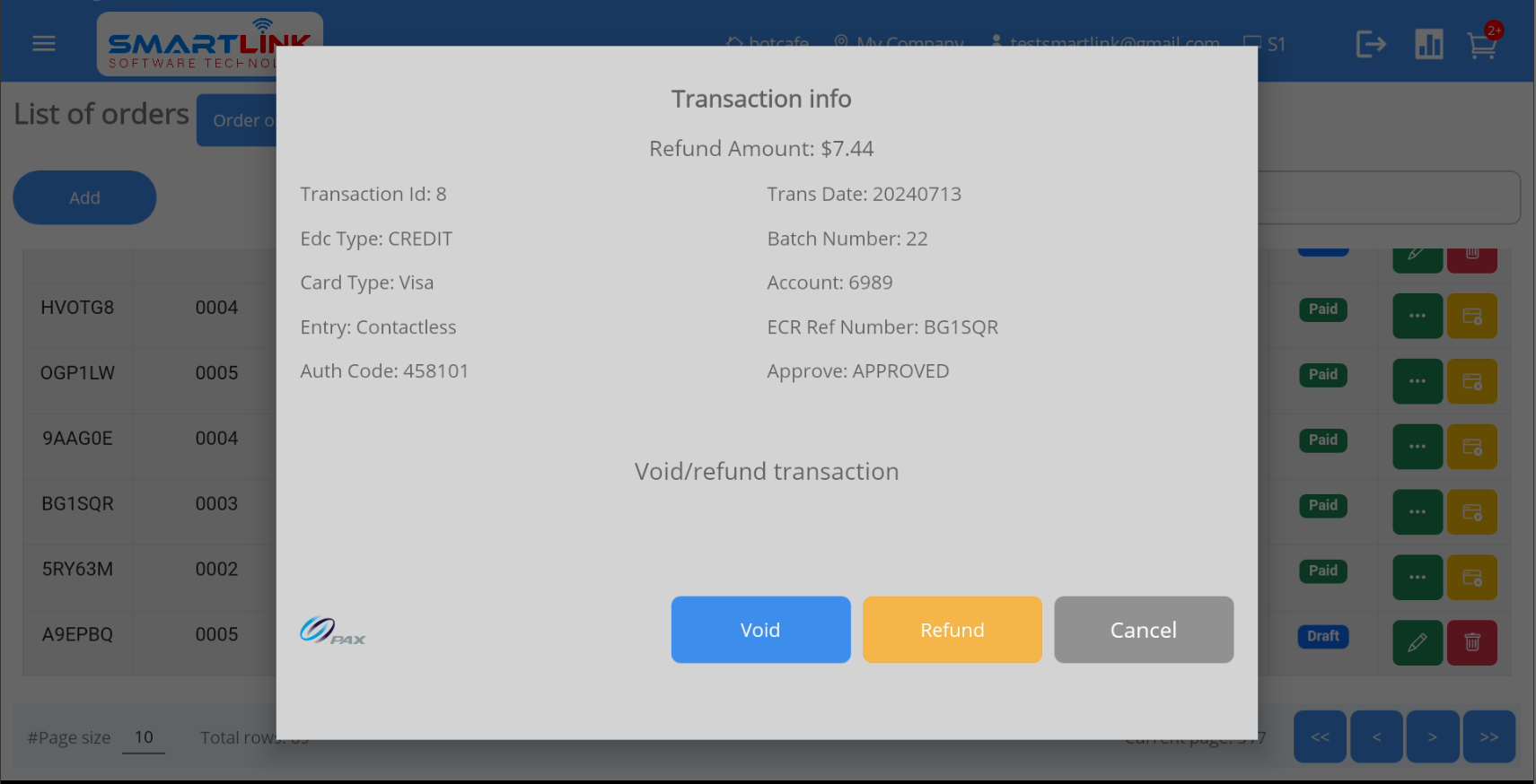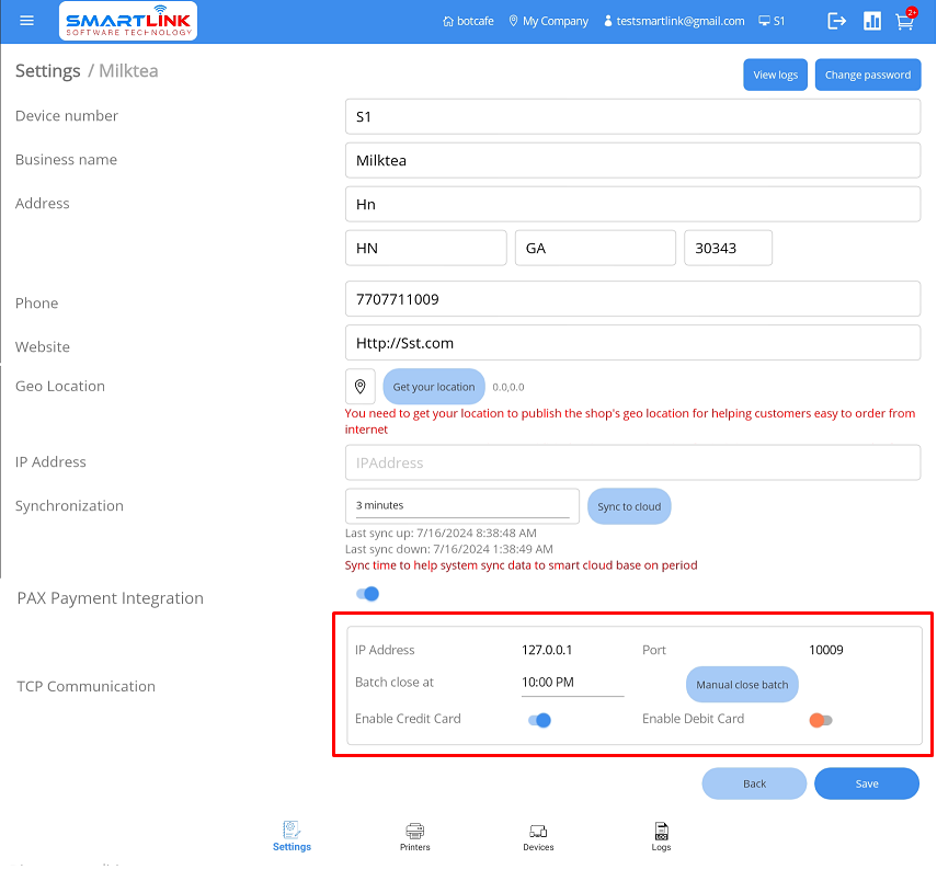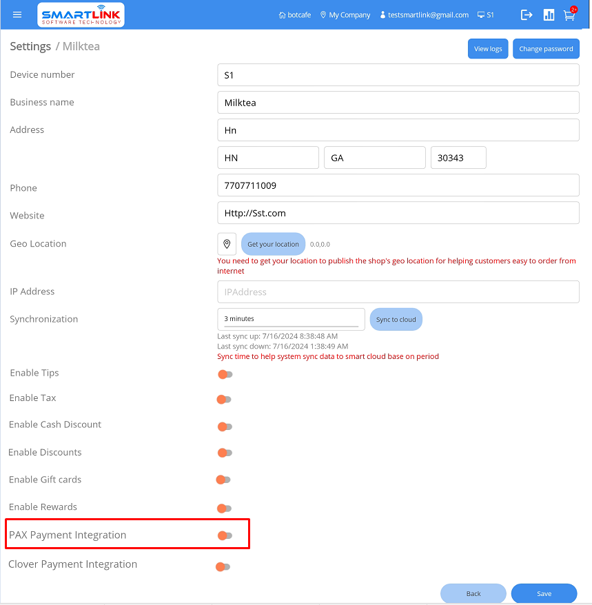 ● Users require step to enable PAX payment integration to be able to use credit cards to pay for orders.