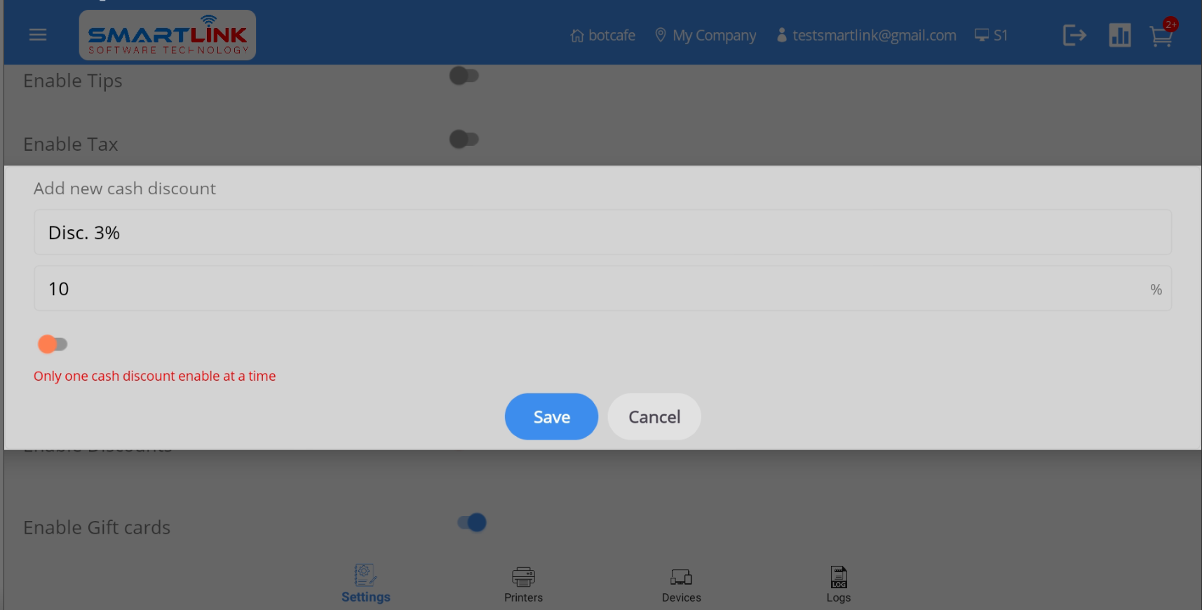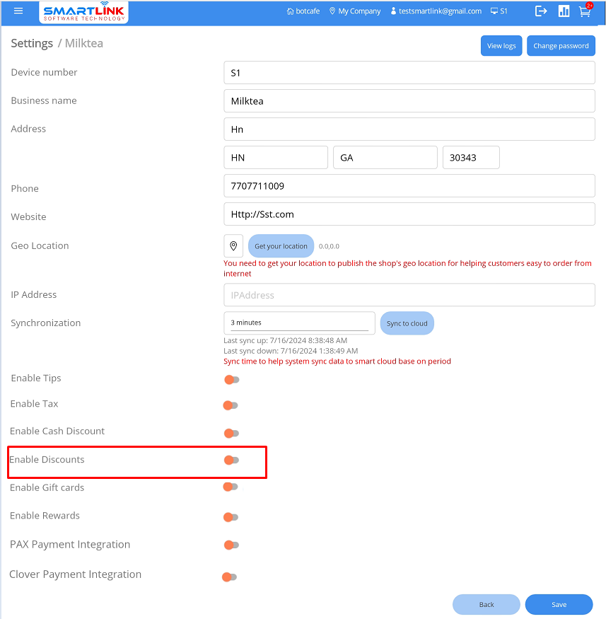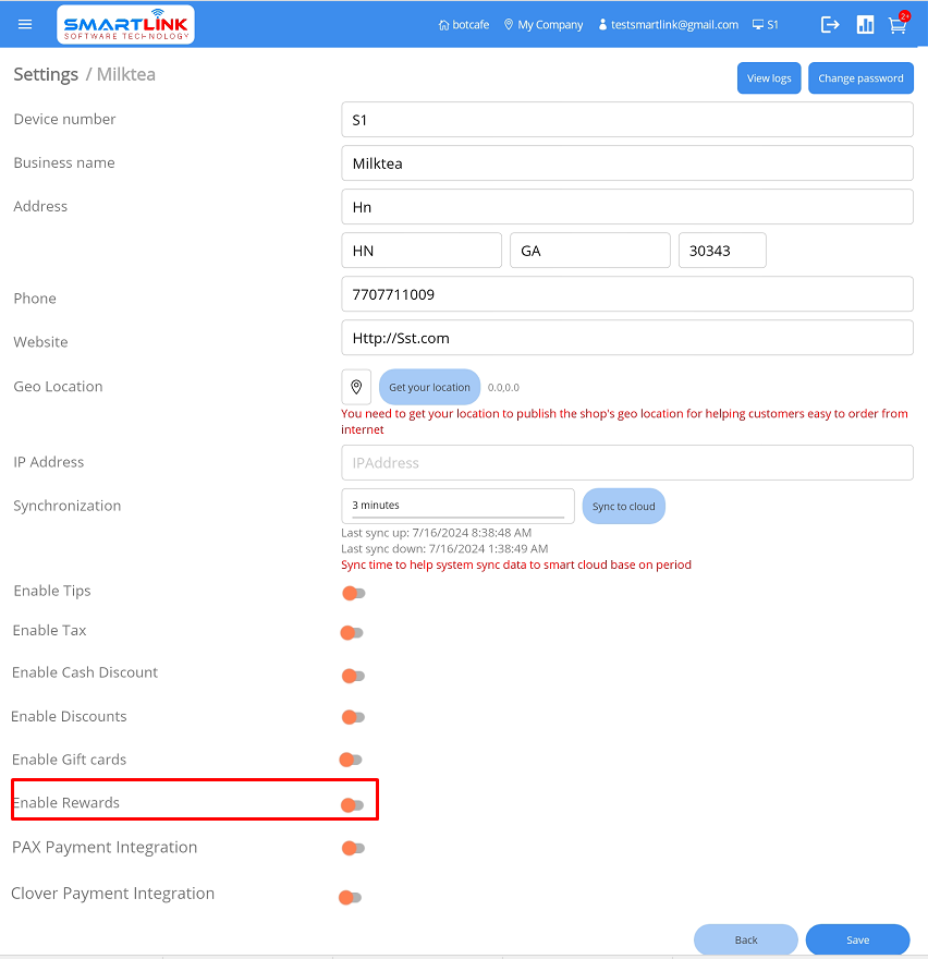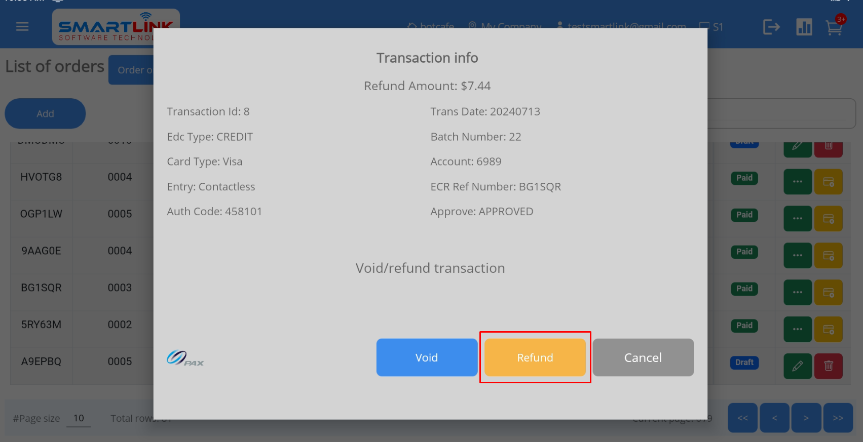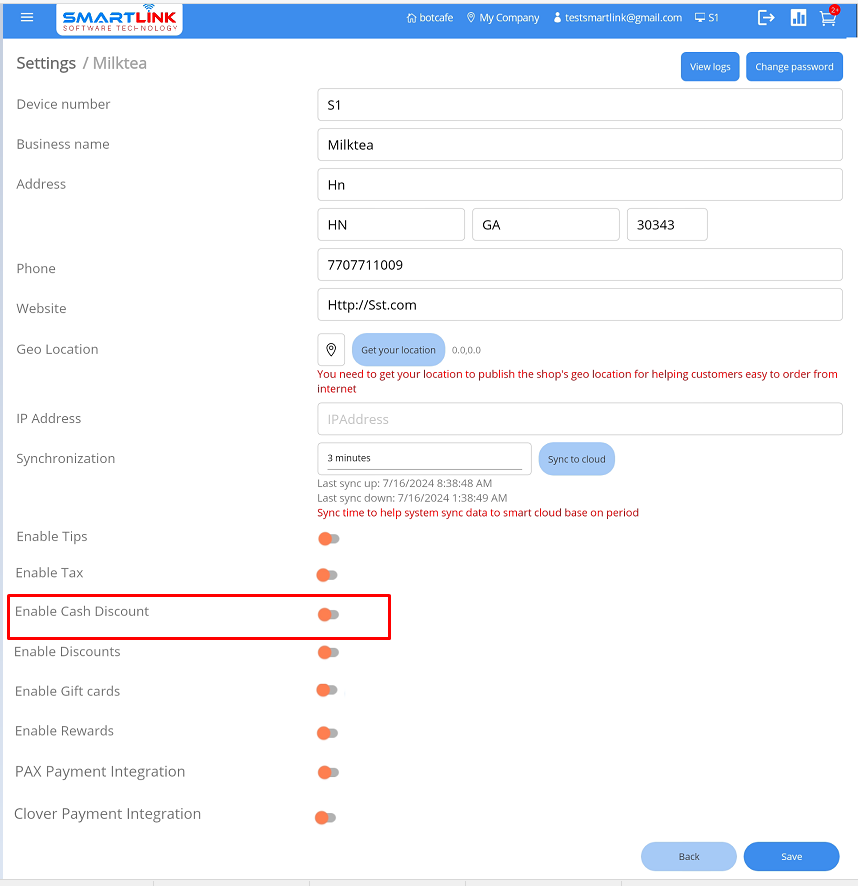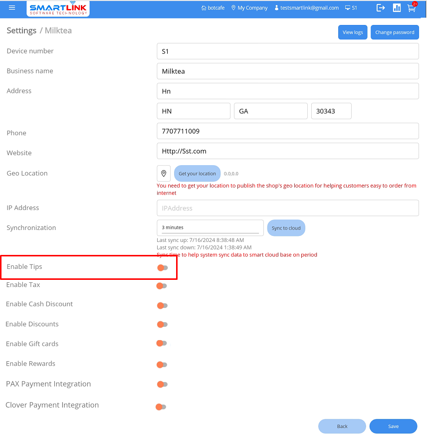 ● Users require step to enable PAX payment integration to be able to use credit cards to pay for orders.