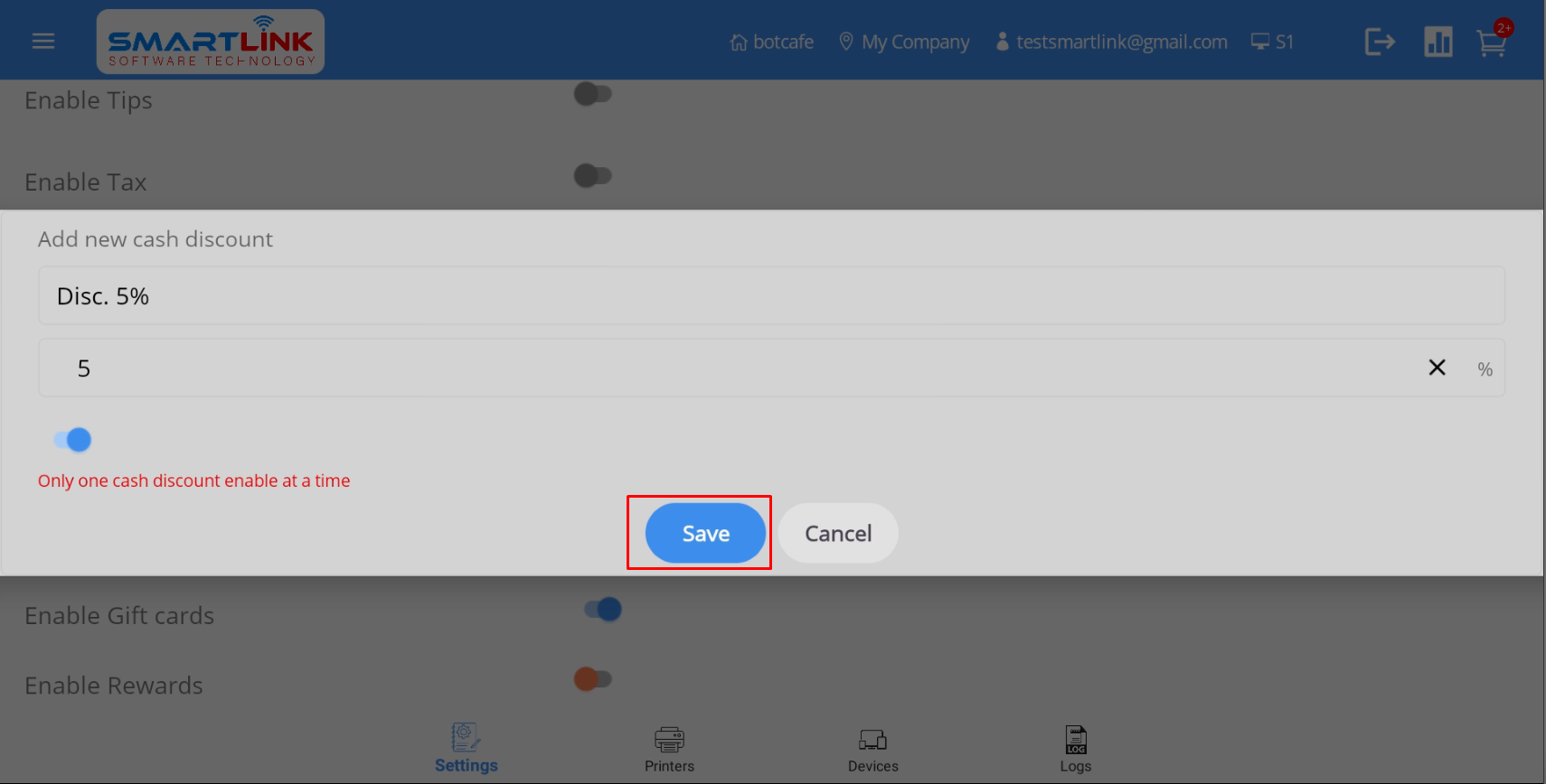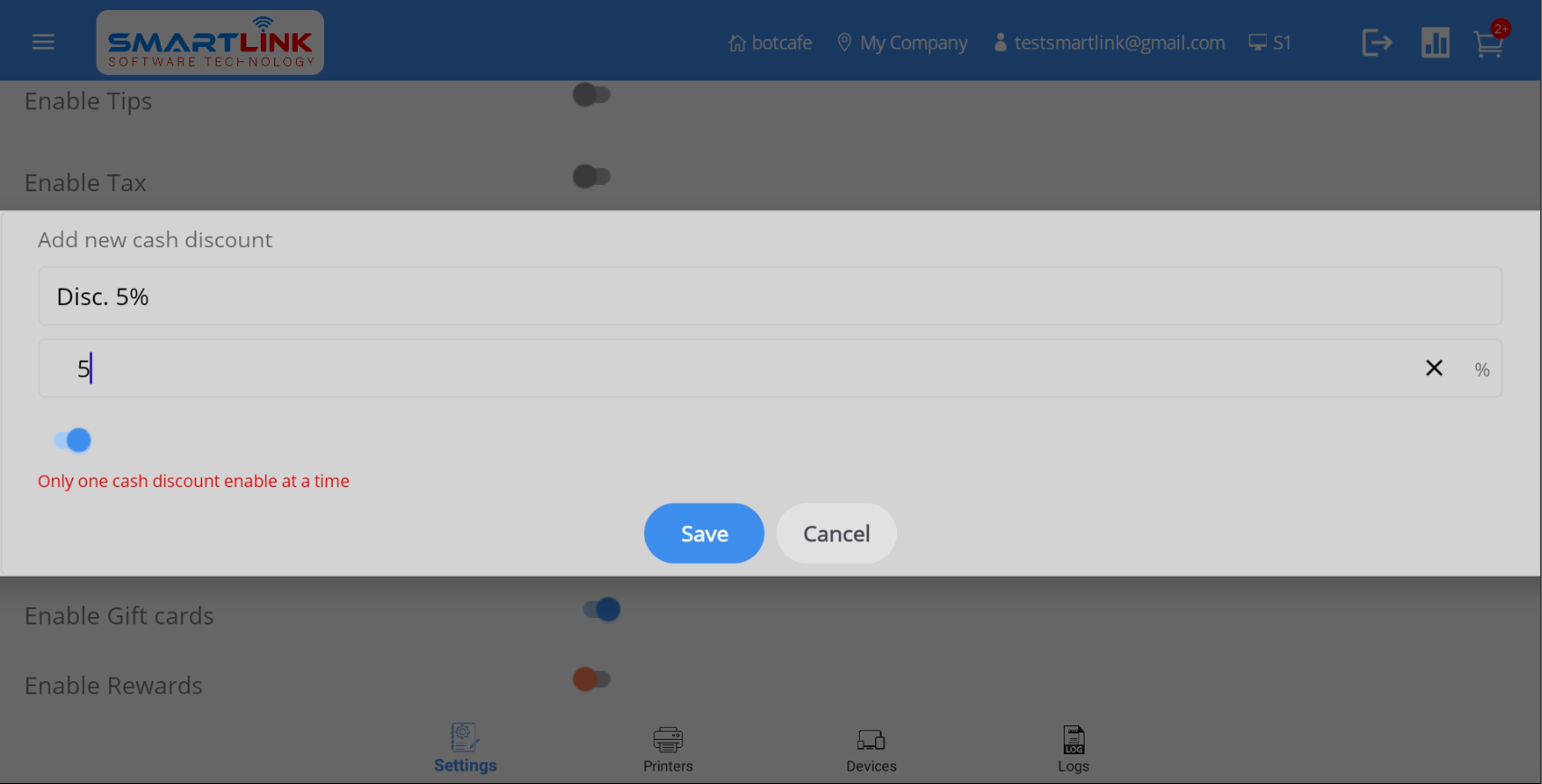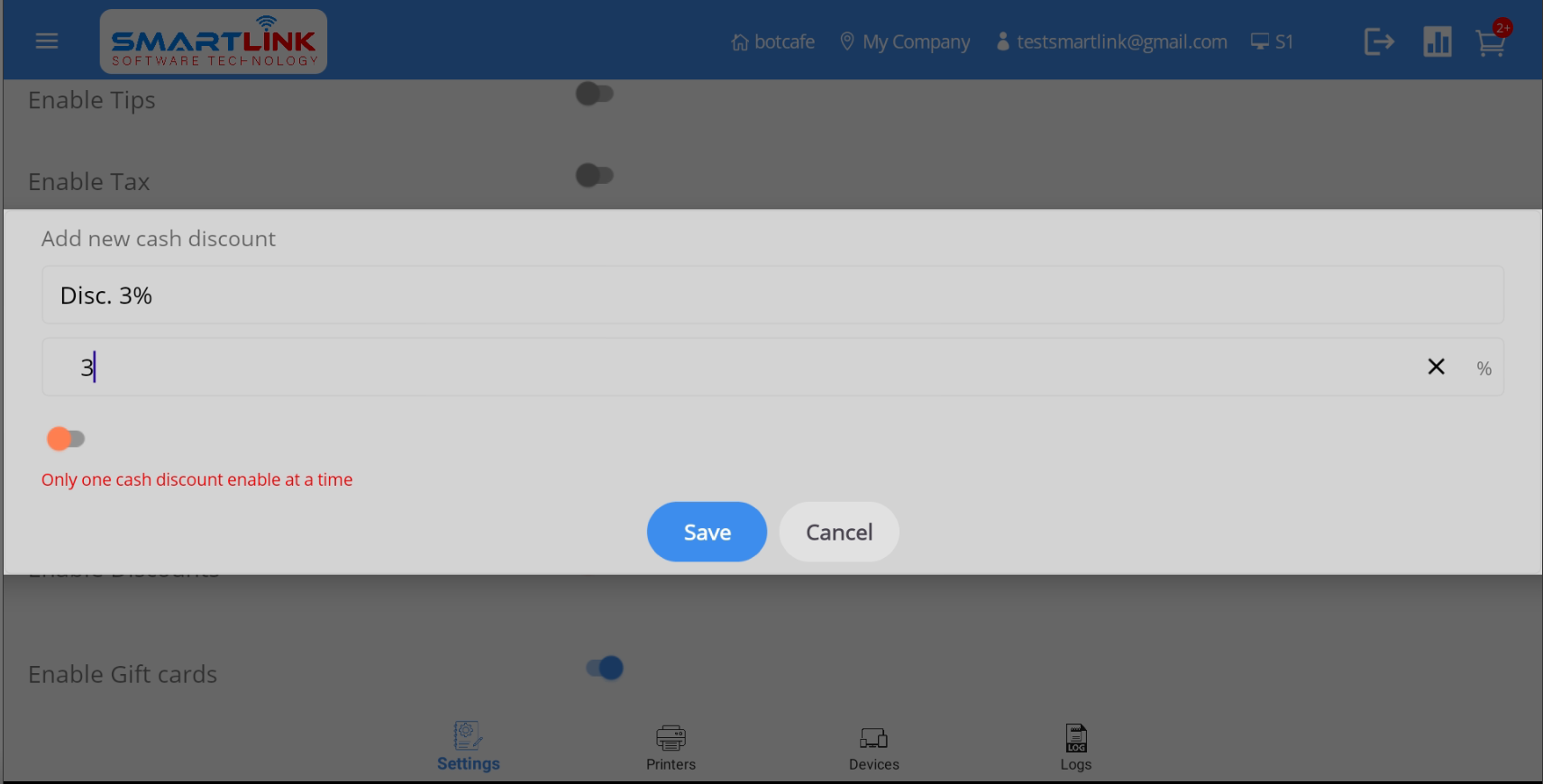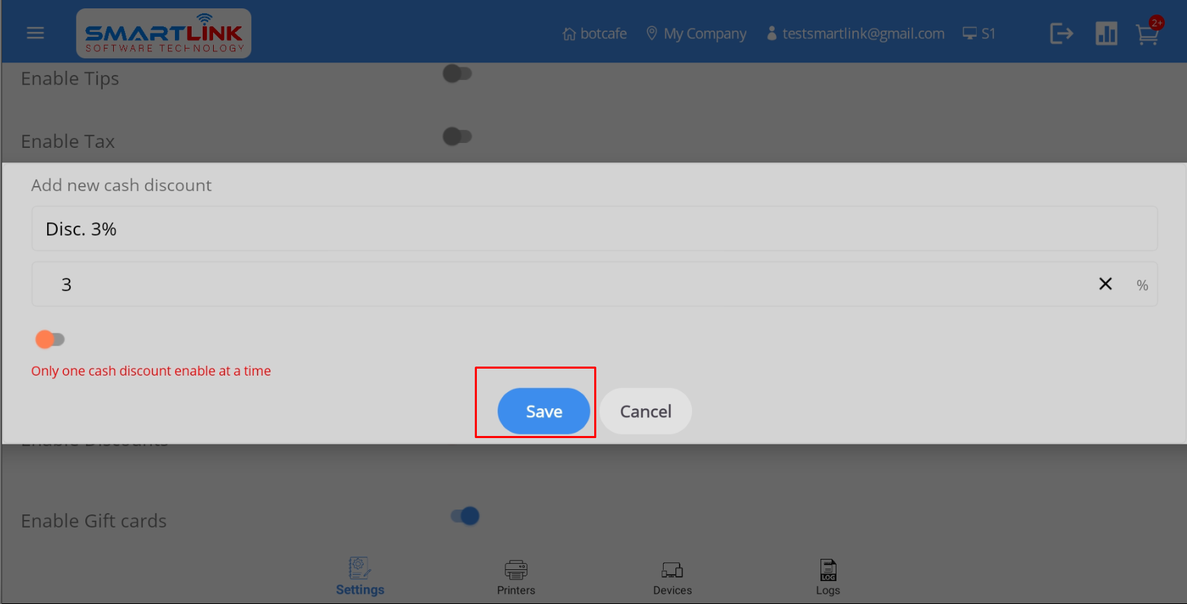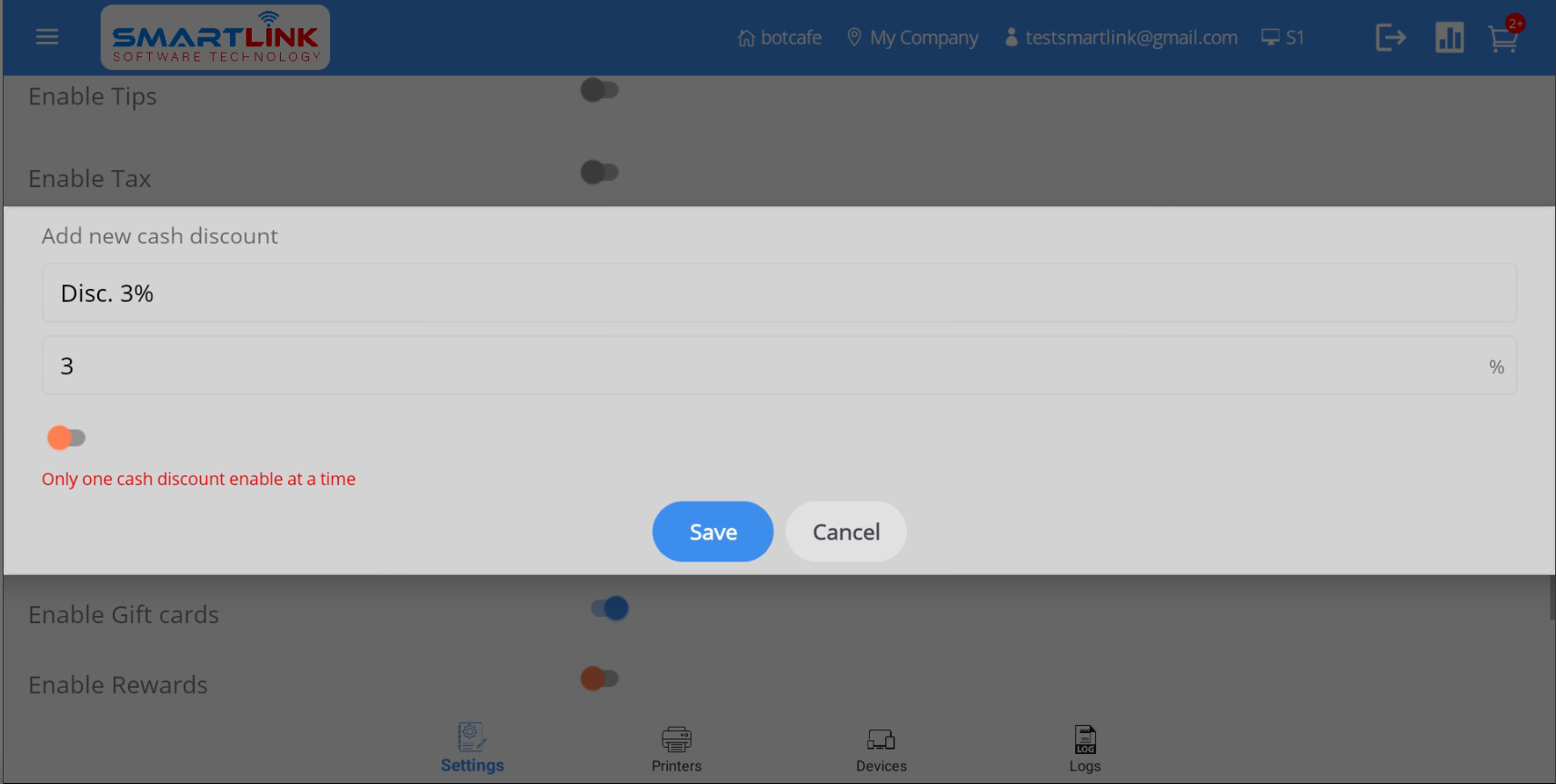 ● Users require step to enable PAX payment integration to be able to use credit cards to pay for orders.