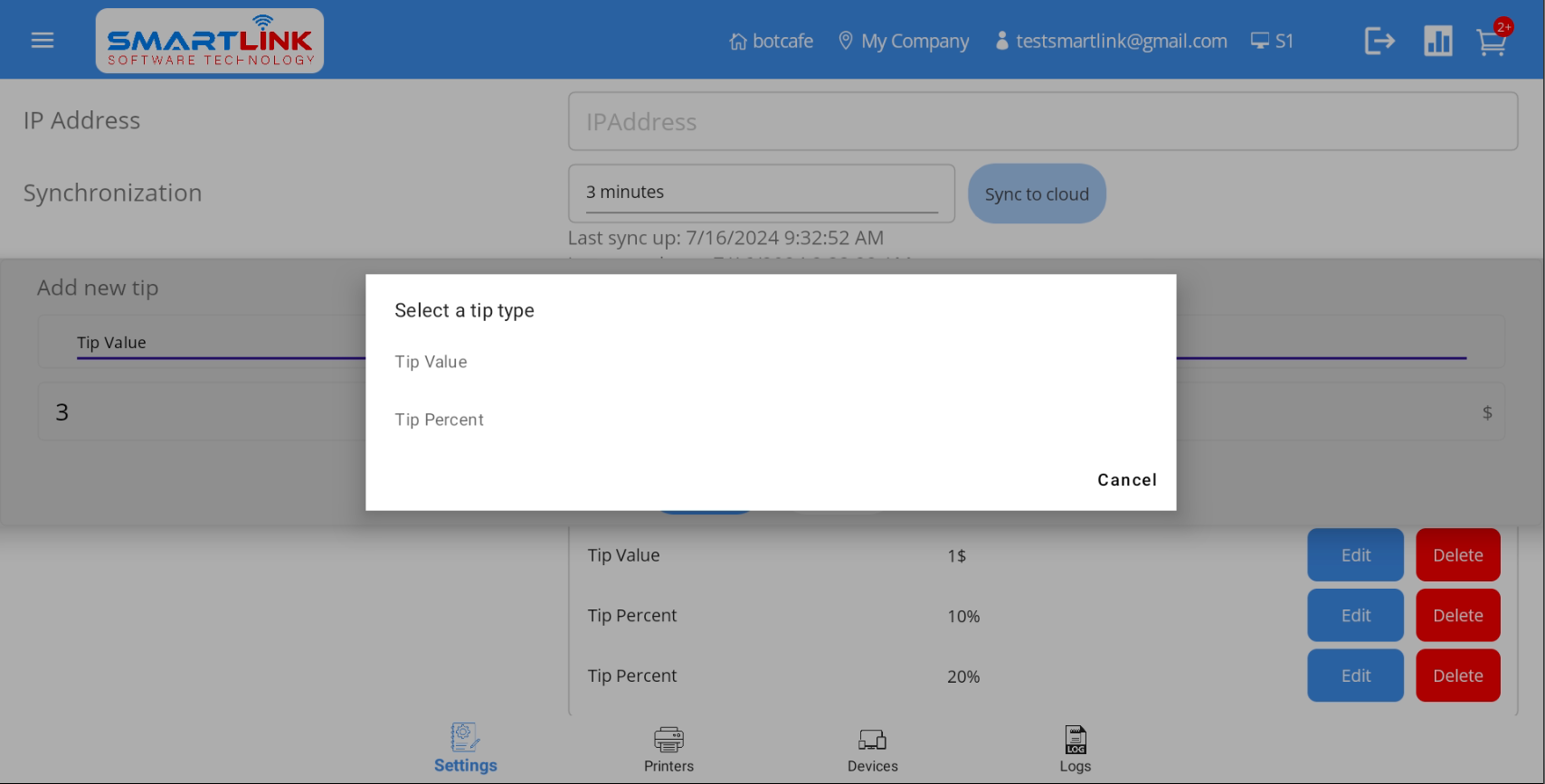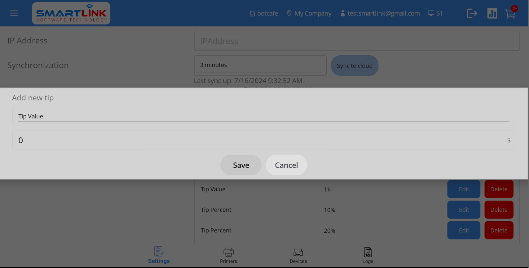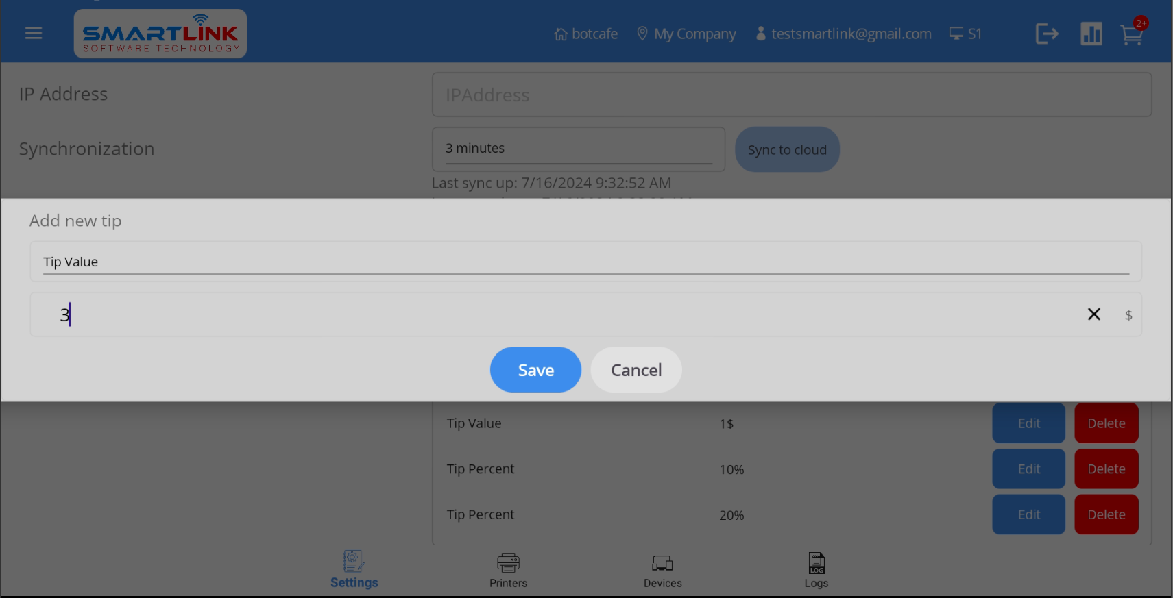 ● The user enters the printer's IP address to connect the printer to the POS machine.