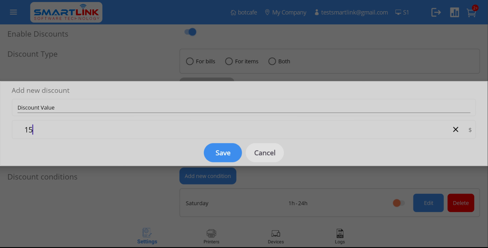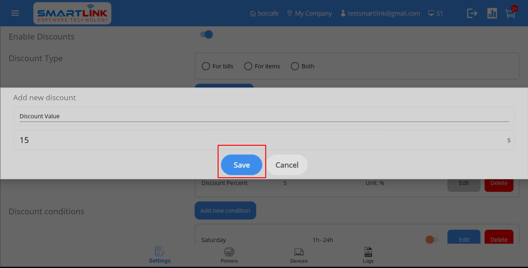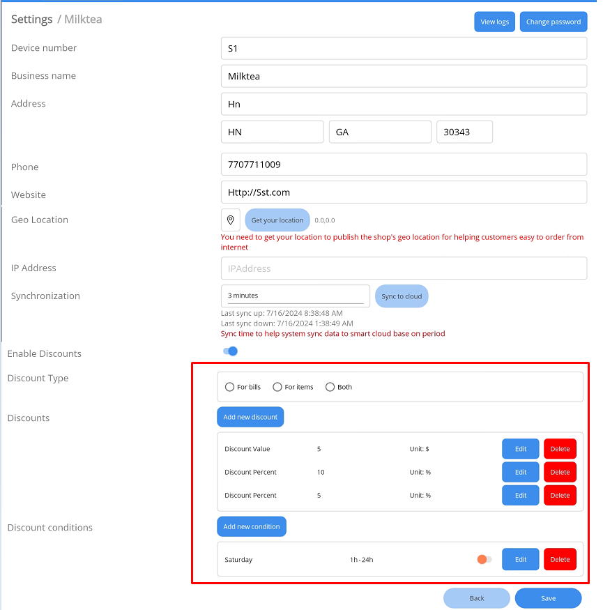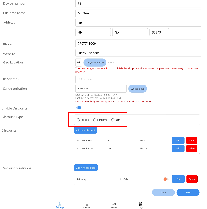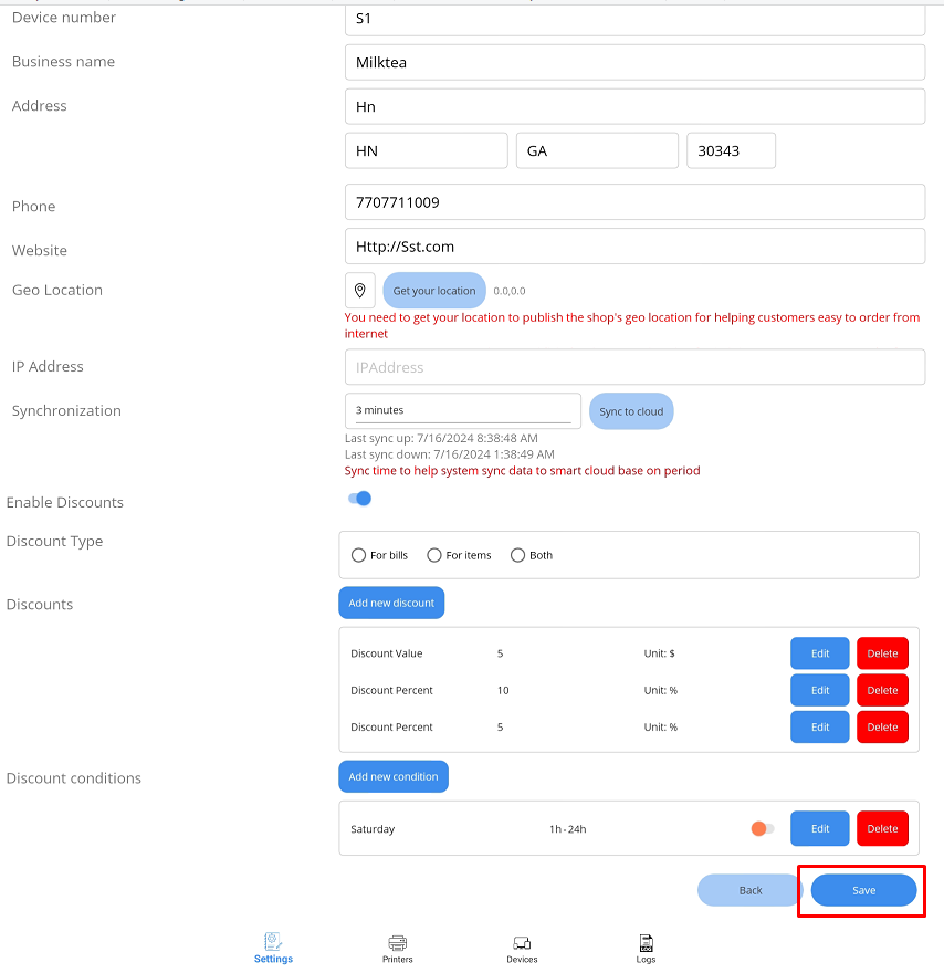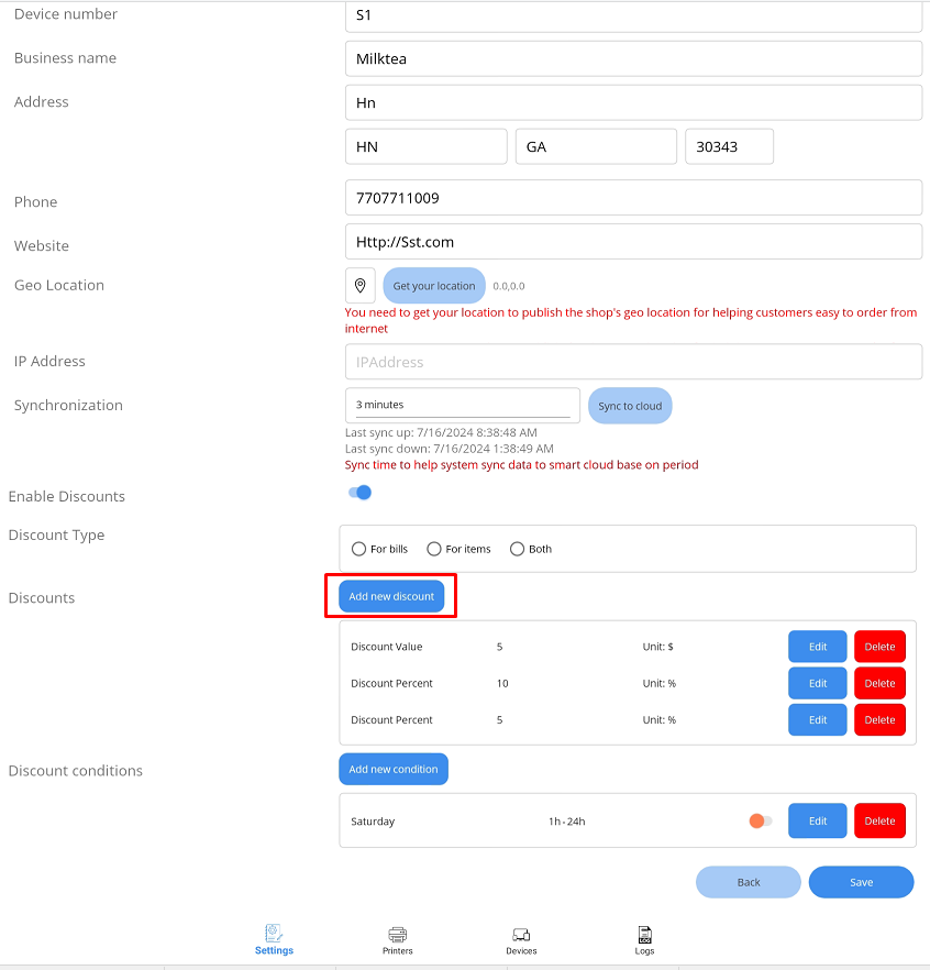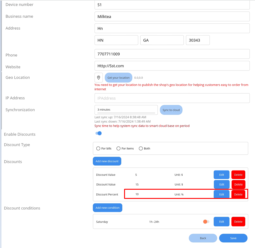 - Step 3: Press the Save button to save a new cash discount condition. Press the Back
