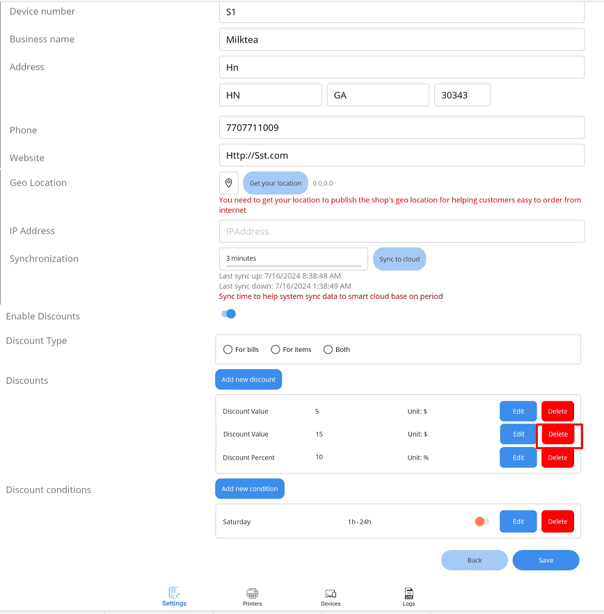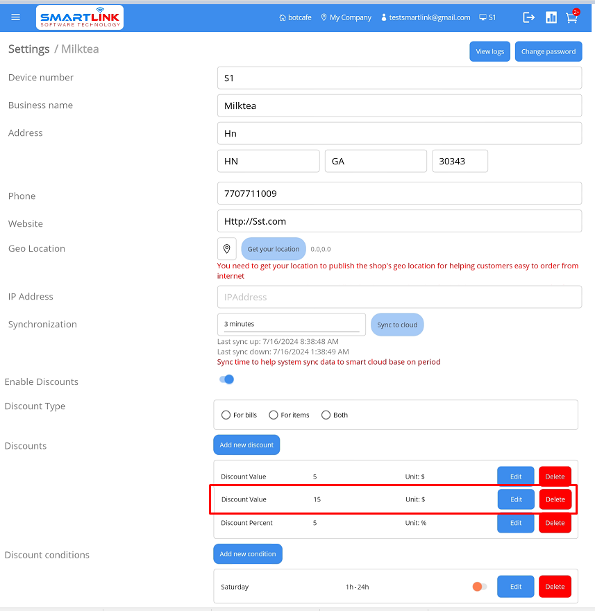 - Step 3: After successfully deleting new discount condition , the system returns to the discount condition