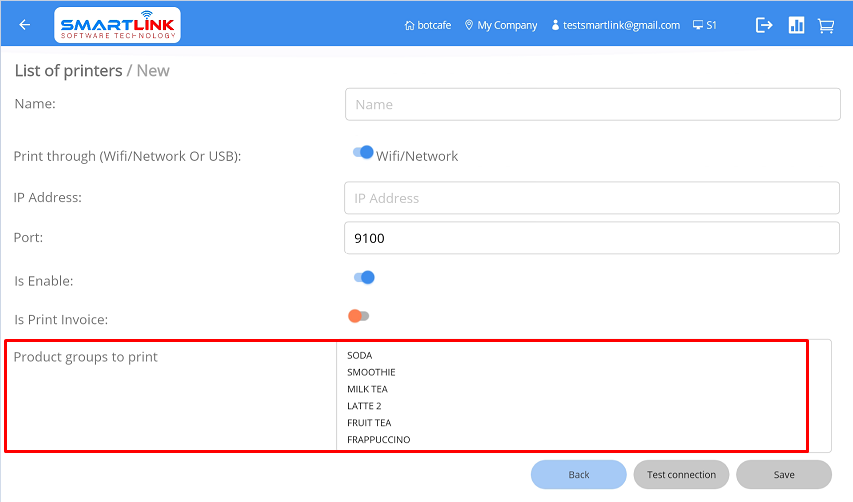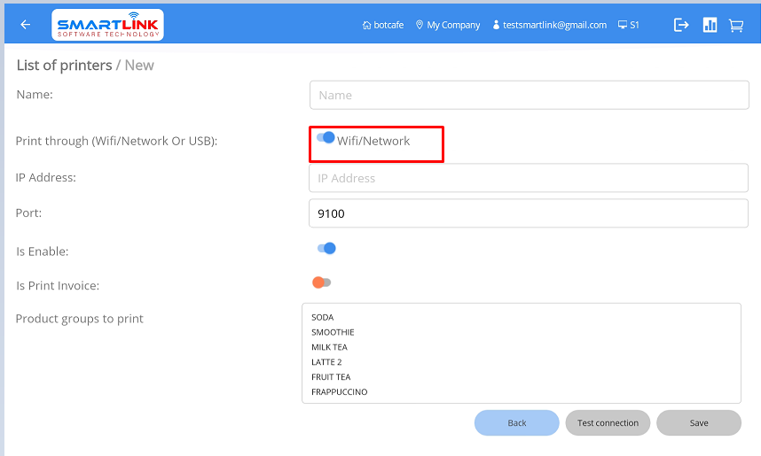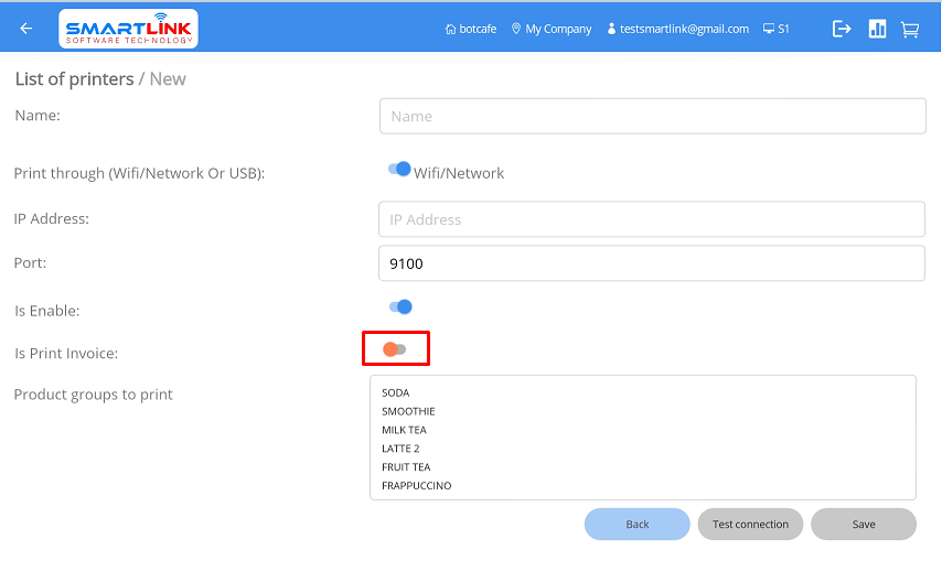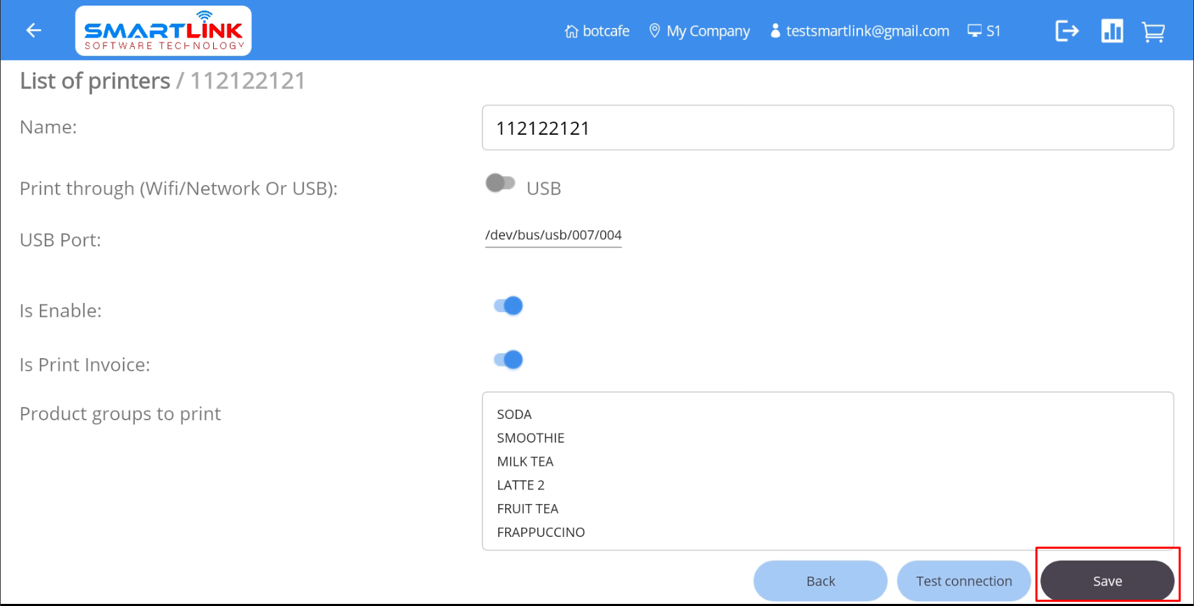 - Step 4: After successfully saving the settings, the printer information will be displayed on the list of printing