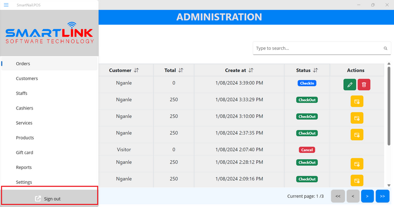 3.2. Check-in as Cashier