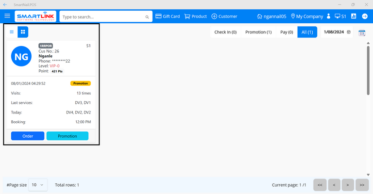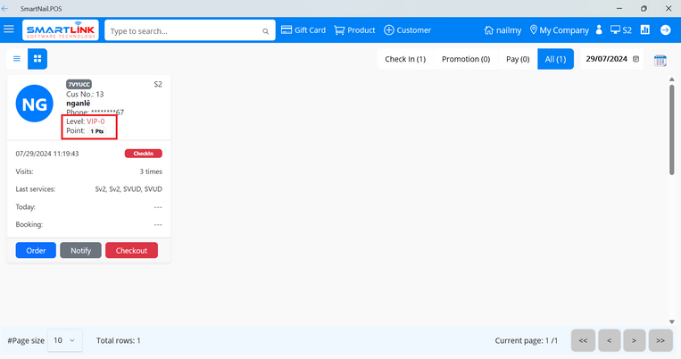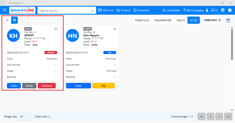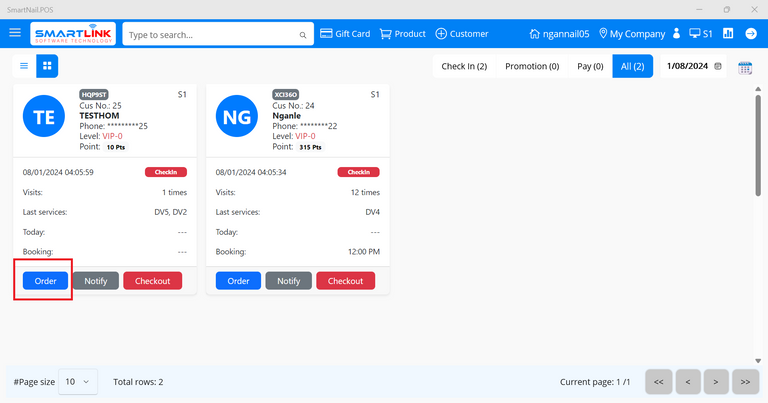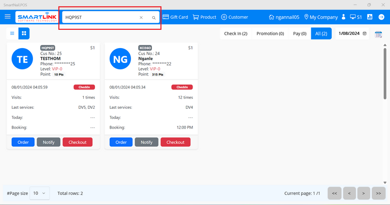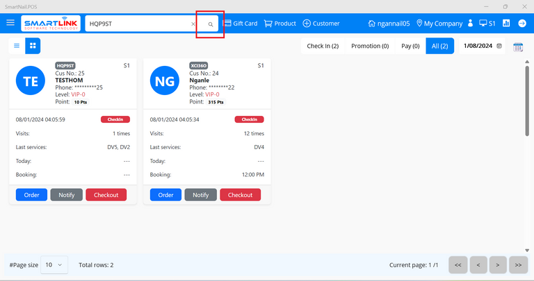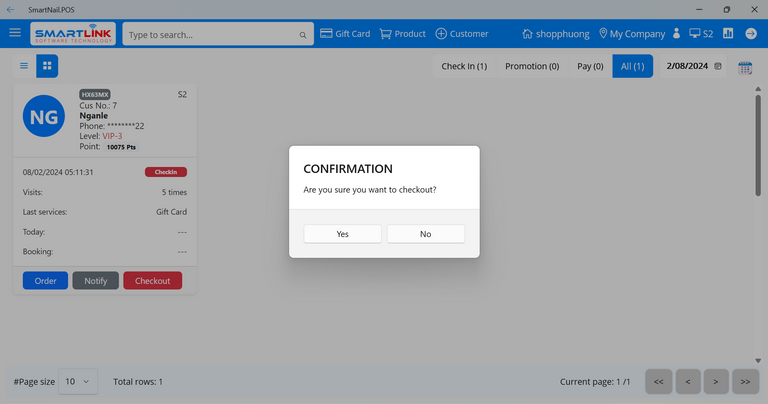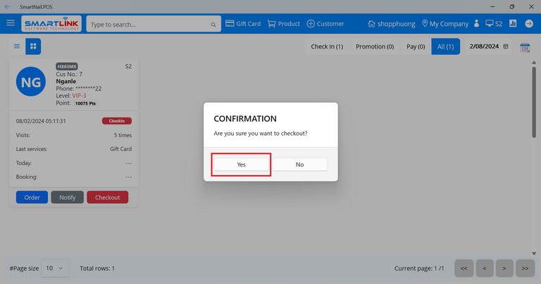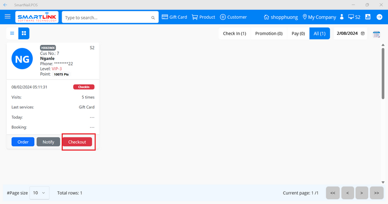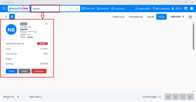 - Step 2: Select a checked-in customer.