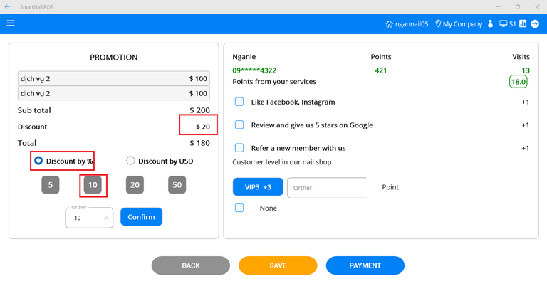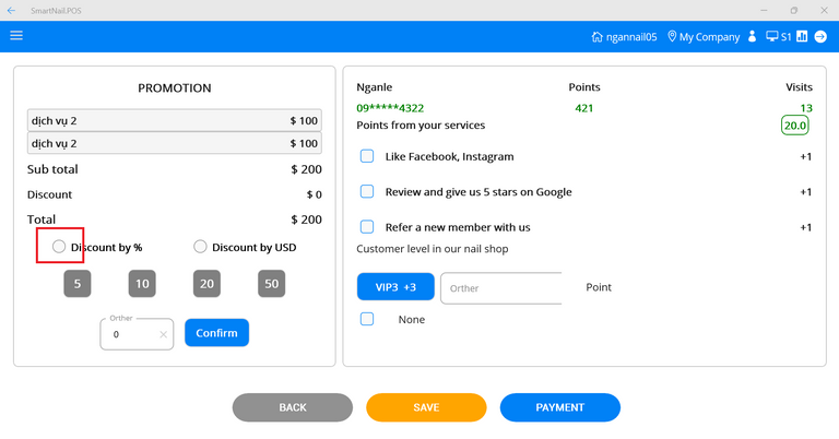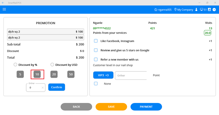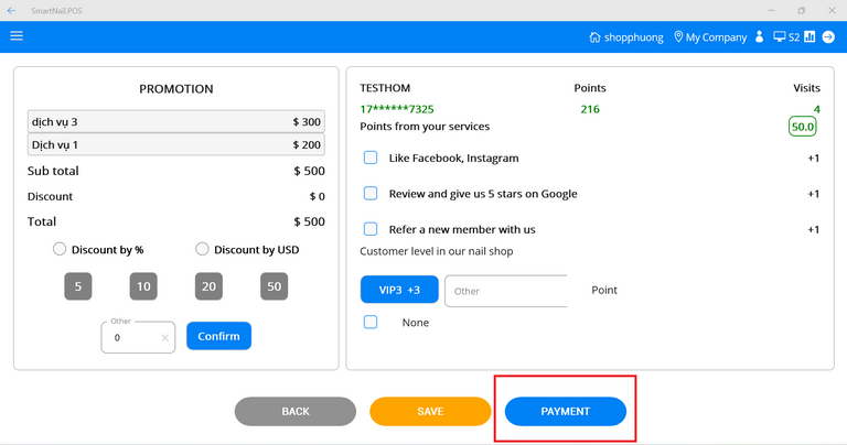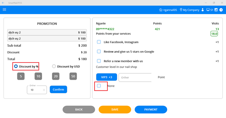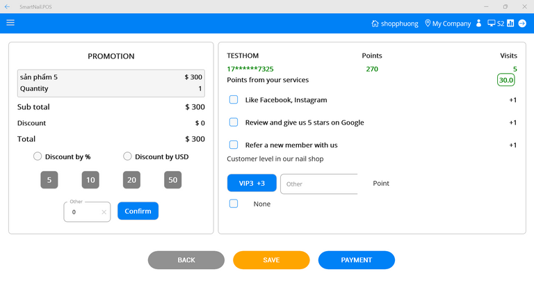 ● Users can give points to customers. If customers perform shop tasks, they will check the checkbox to add points.