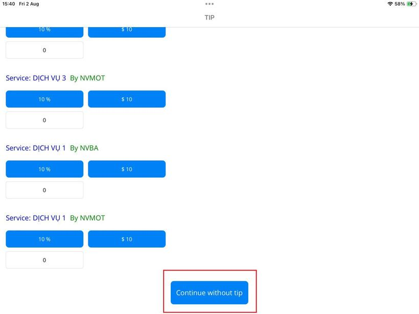 - Step 8: Press the Continue without tip button.