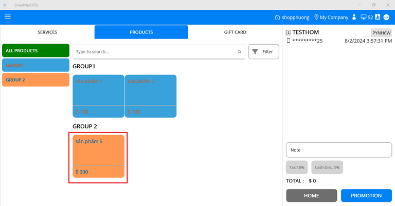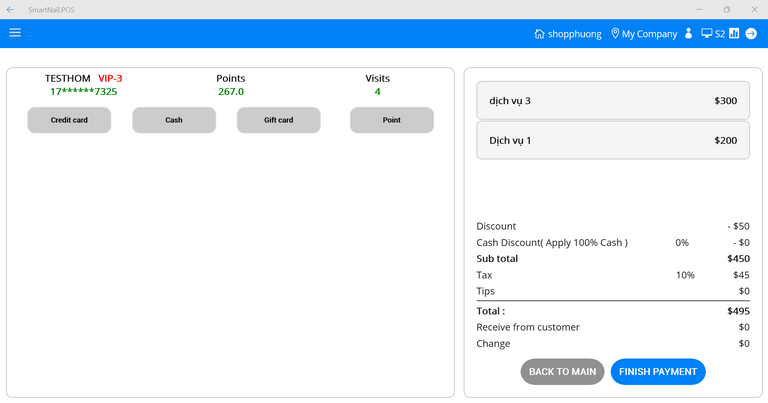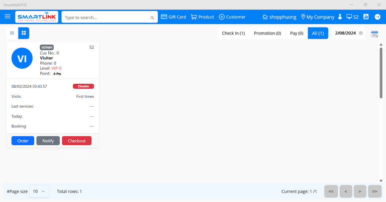 - Step 3: Press the button Check in to shop, the system switches