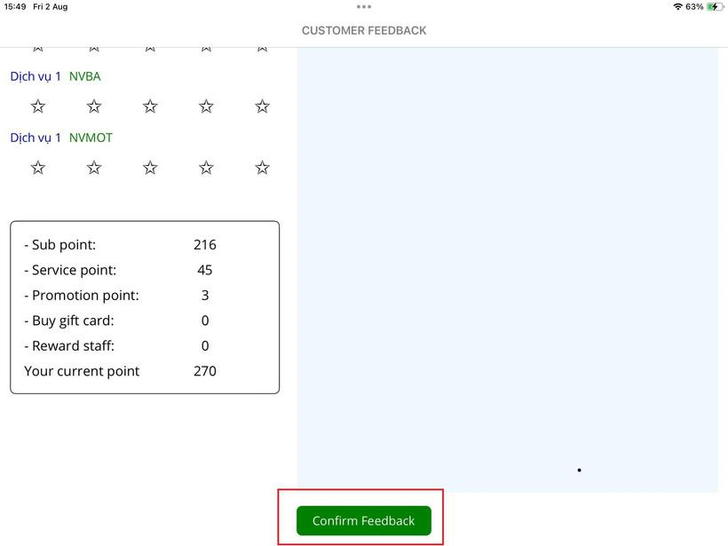 ● The system displays customer feedback screen on the Checkin app.