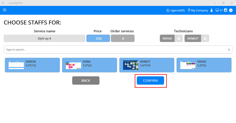 ● Combo service allows selecting a maximum of 4 employees and a minimum of 1 employee.