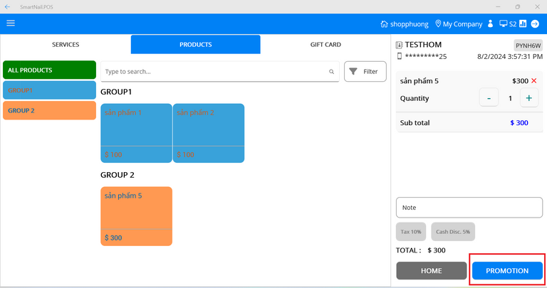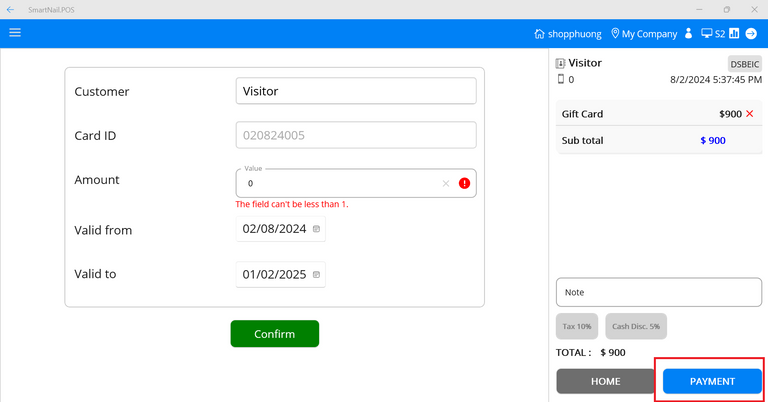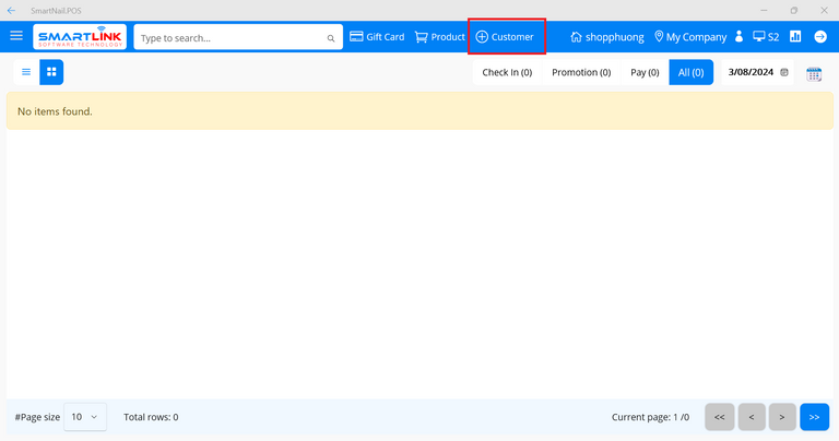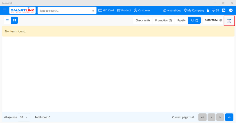 - Step 3: Press the button Check in to shop, the system will