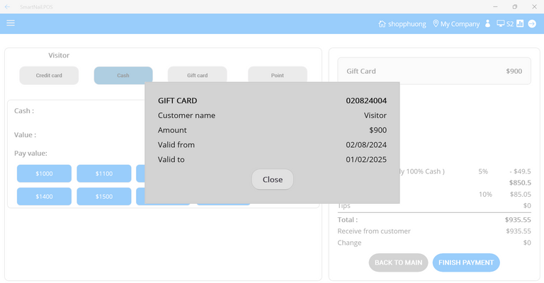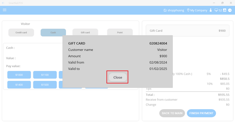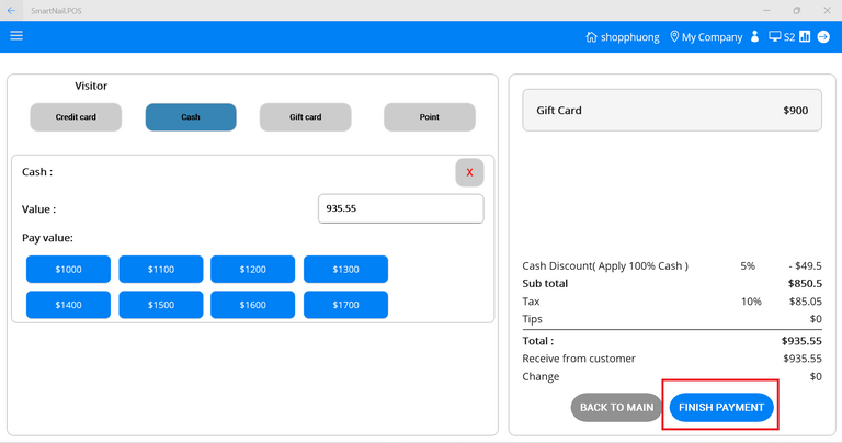 - Step 12: Press the Finish Payment button.