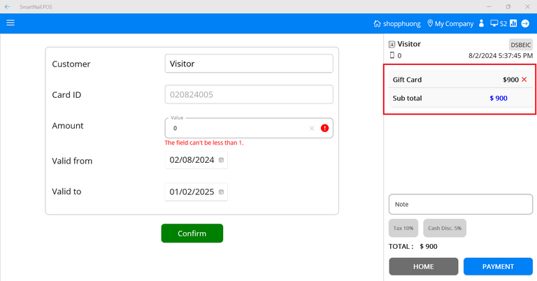 - Step 1: On the main screen, users press the Gift card button.