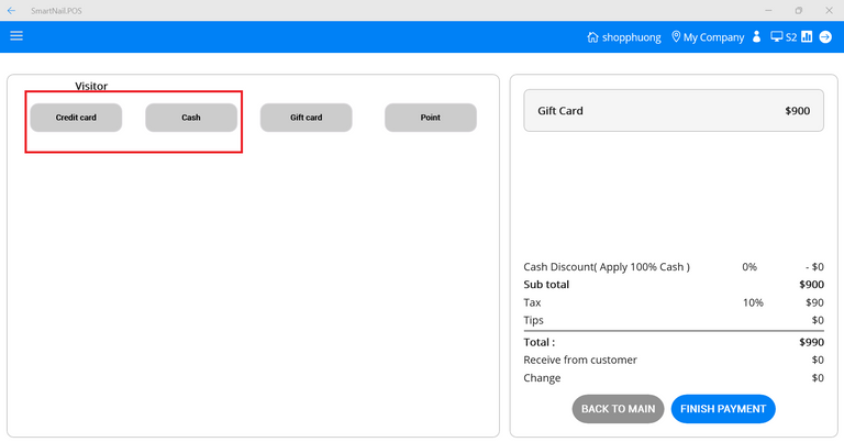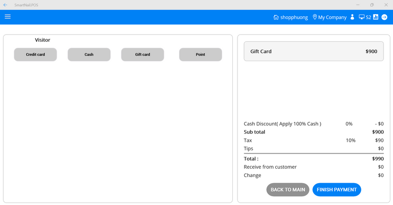 - Step 9: Press the Finish Payment button.
