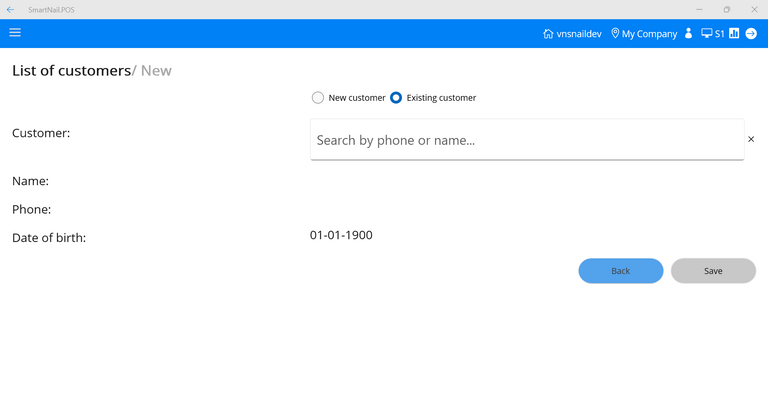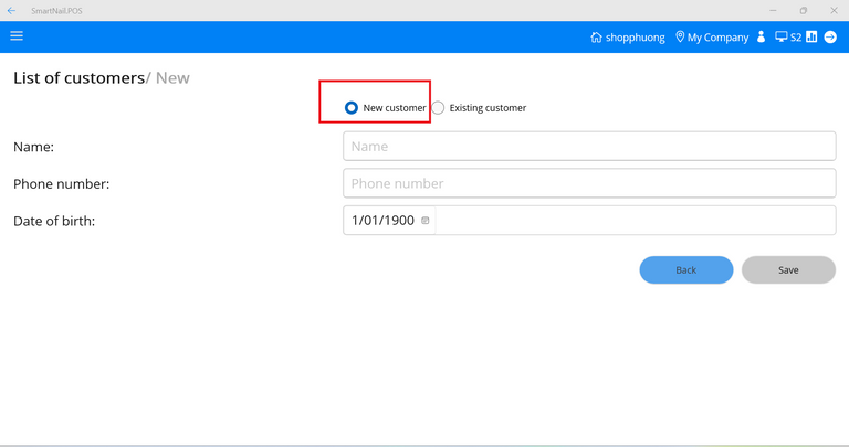 - Step 1: At the Customer screen, select New customer.
