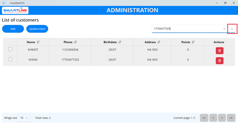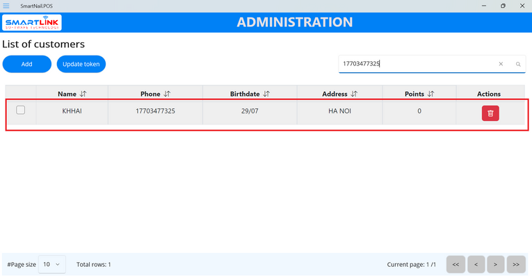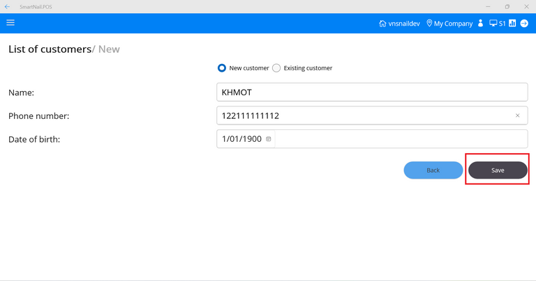 ● The system displays the main screen and displays the newly added customer information.