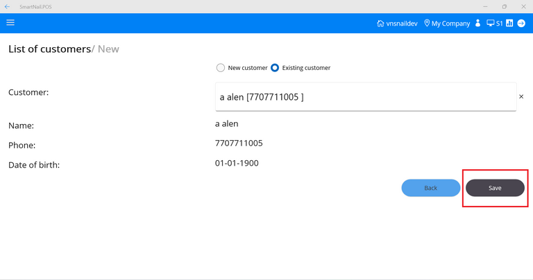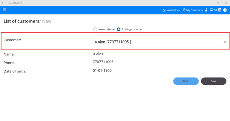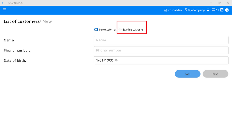 - Step 1: At the Customer screen, select Existing customer.