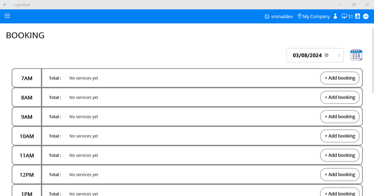 - Step 2: At the Booking screen, Press Add booking.