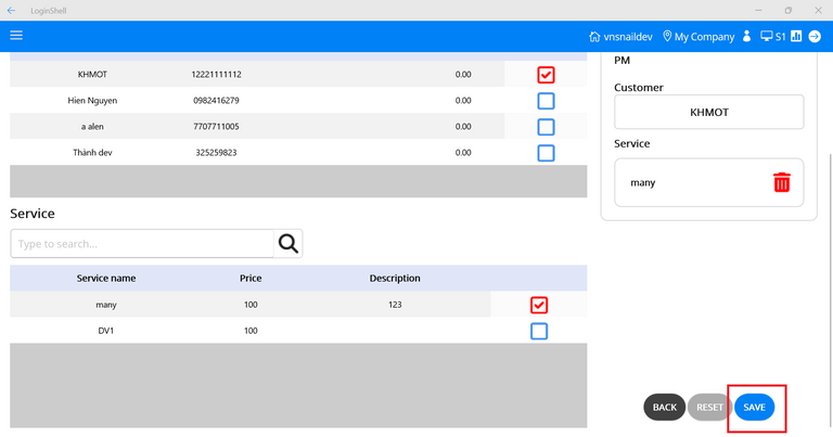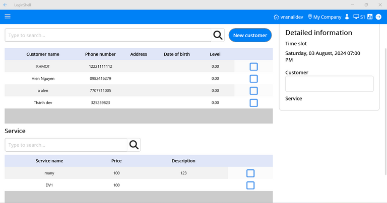 - Step 3: Select customer, services and worker.