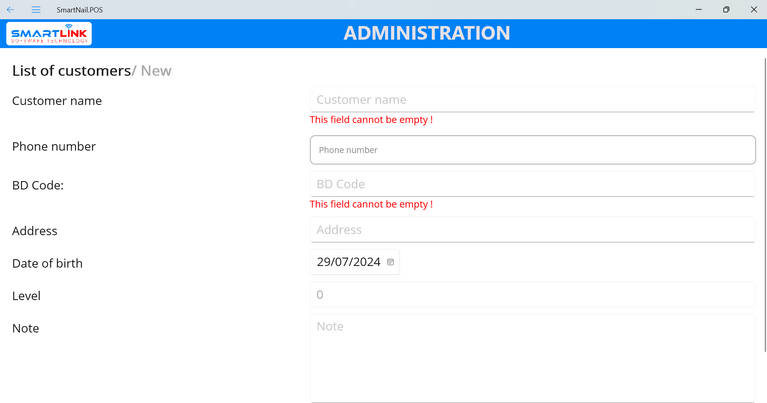 ● The system displays the customer adding screen.