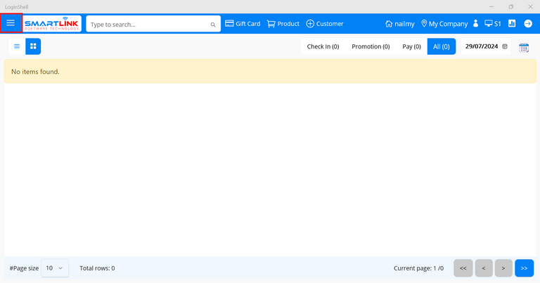 ● The system will display the customer check in screen.