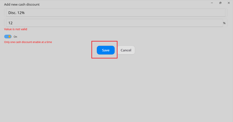 ● Select an available discount value or enter a value.