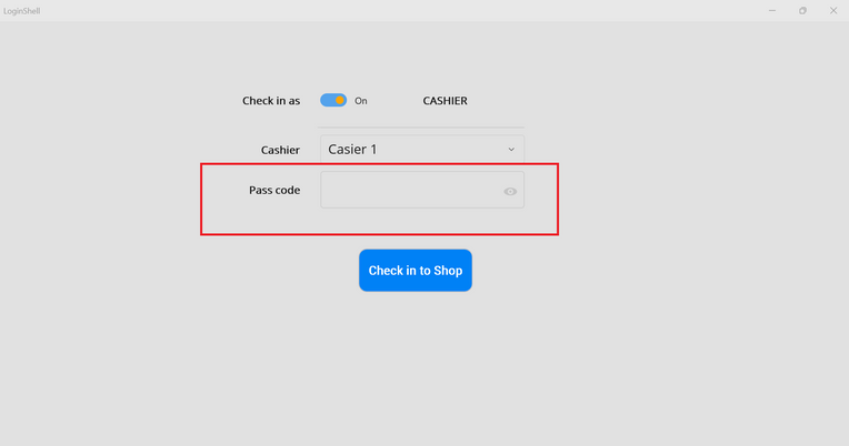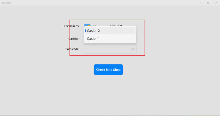Check in as "CASHIER"