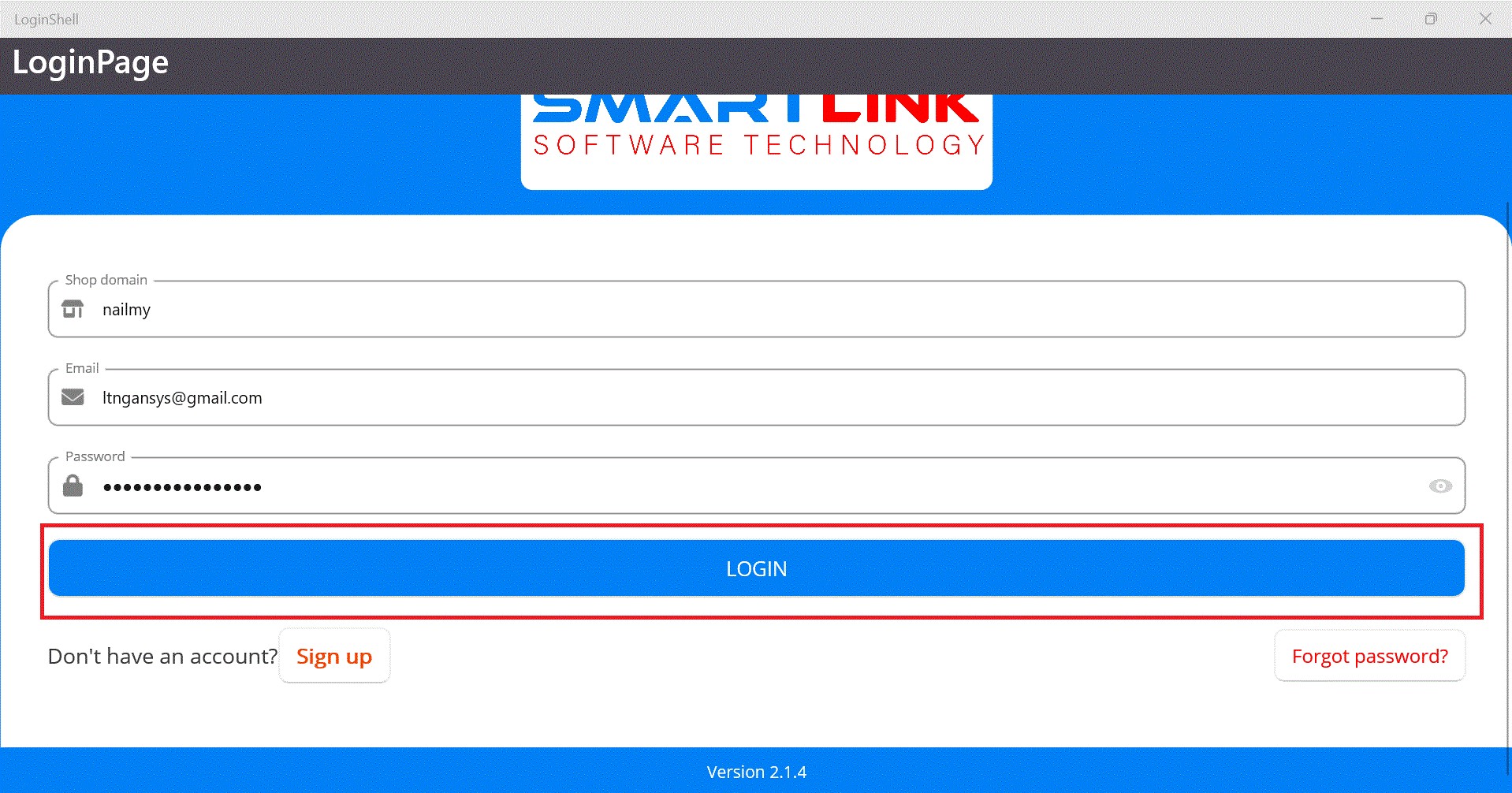 - Step 2: Enter information to log in to the shop