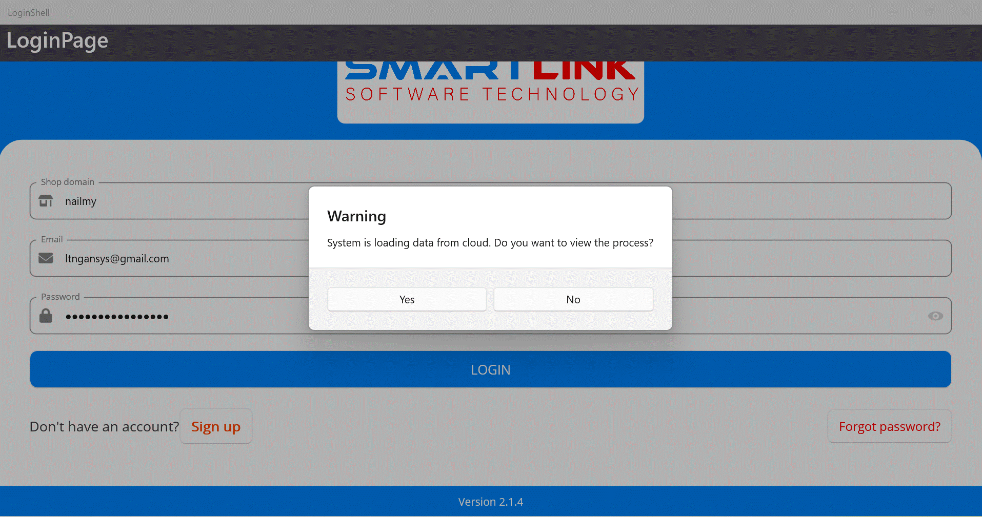 ● Press the button No, the system will not synchronize data from the Cloud to the POS